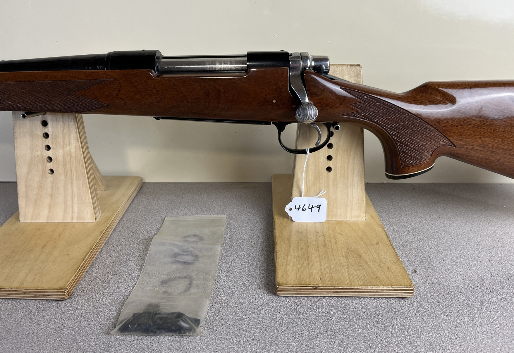 CONDITION: G-VG OVERALL VG BORE. NOTE MAG FLOOR PLATE ENGRAVED WITH INITIALS RHI. SPECS: 22IN BBL. EXTRAS: INCL ORIGINAL REAR SIGHT. S/N: B6786075