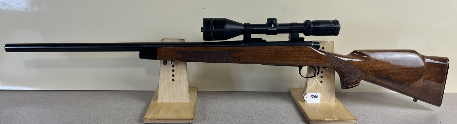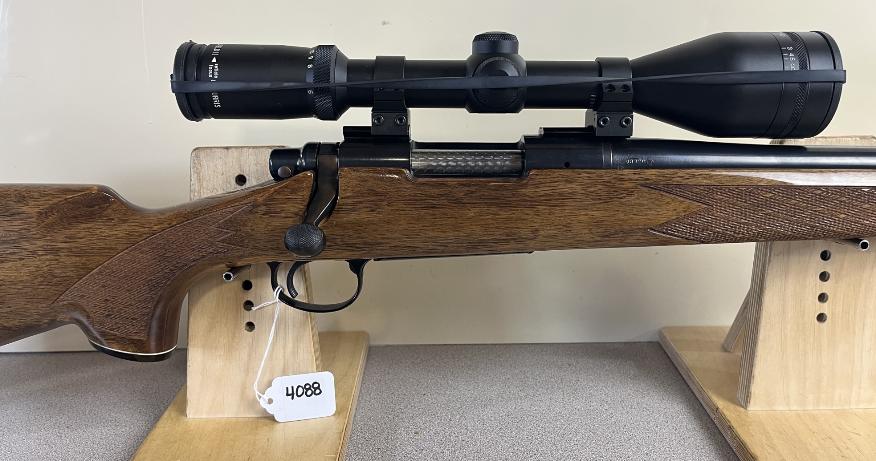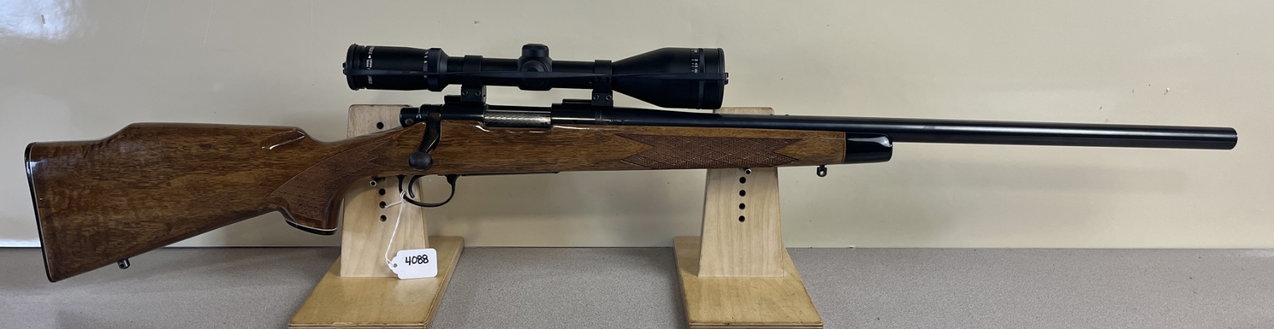 CONDITION: G-VG OVERALL. BORE VG. SPECS: 24IN HEAVY BBL. TIMNEY TRIGGER. EXTRAS: BURRIS 4.5-14 X FULLFIELDII SCOPE. CLEAR W/ CROSSHAIRS. S/N: A6521861.