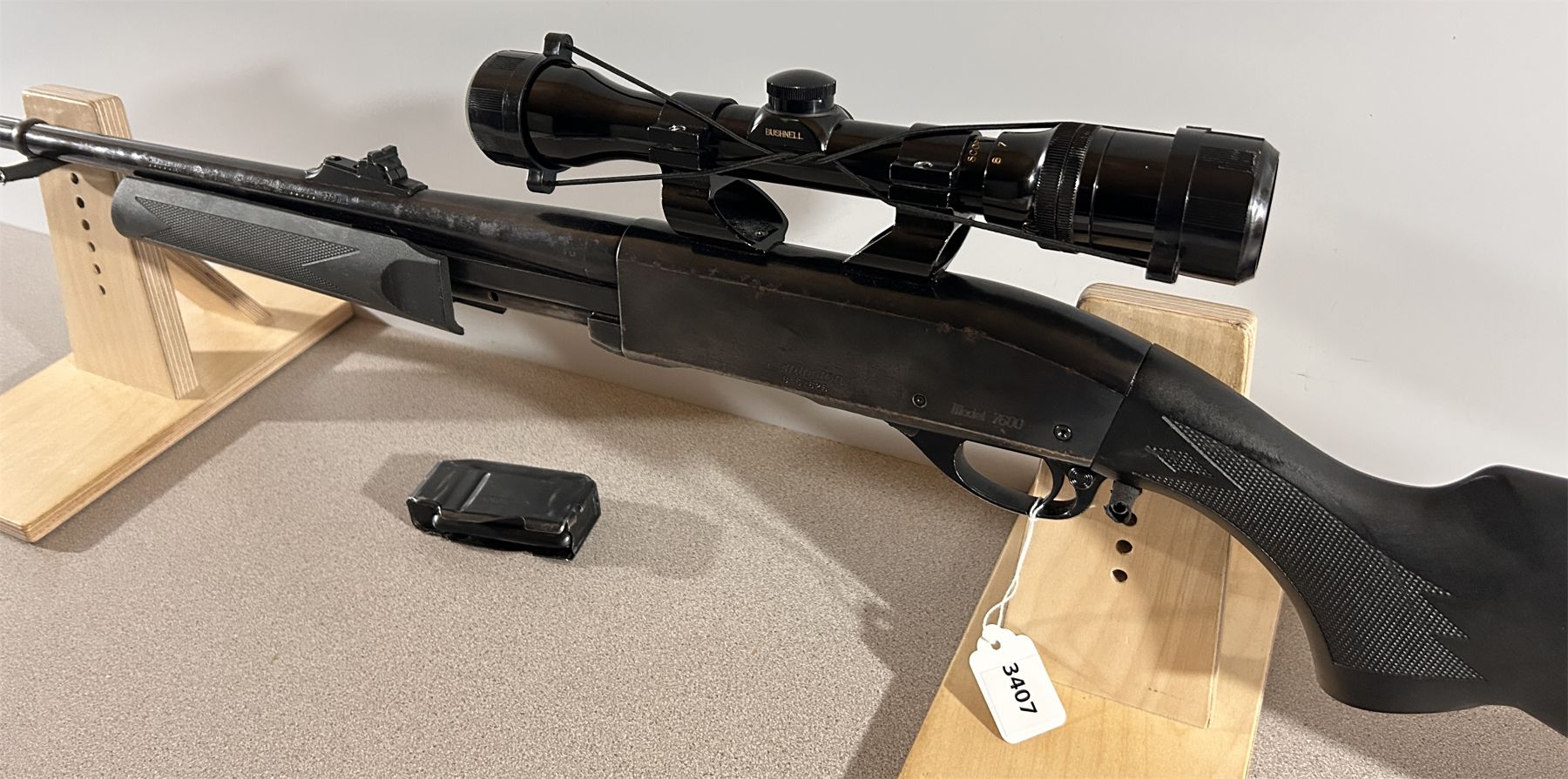 CONDITION: G OVERALL INCLUDING BORE. MINOR FRECKLING. SPECS: COMPOSITE STOCK. EXTRAS: BUSHNELL 2.5-8 SCOPE ON SEE THROUGH RINGS. S/N: 8497626.