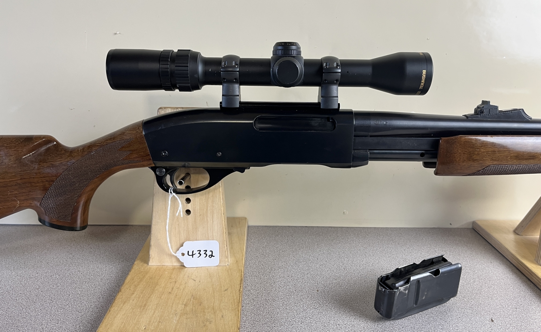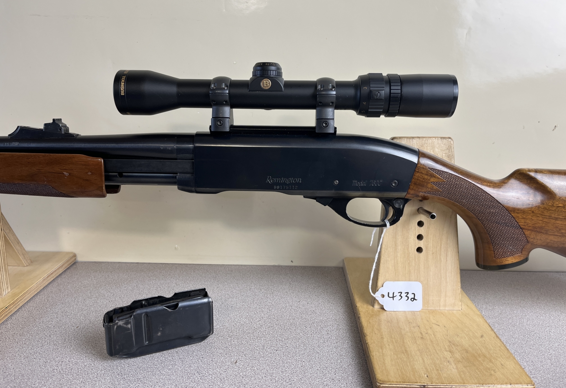CONDITION: VG OVERALL INCL BORE. NOTE: STOCKS SHOW MINOR BLEMISHES. SPECS: 22-3/4IN BBL WITH IRON SIGHTS. INCL 1X MAG. EXTRAS: BUSHNELL ELITE 2-7 SCOPE CLEAR WITH CROSSHAIRS. S/N: B8175112