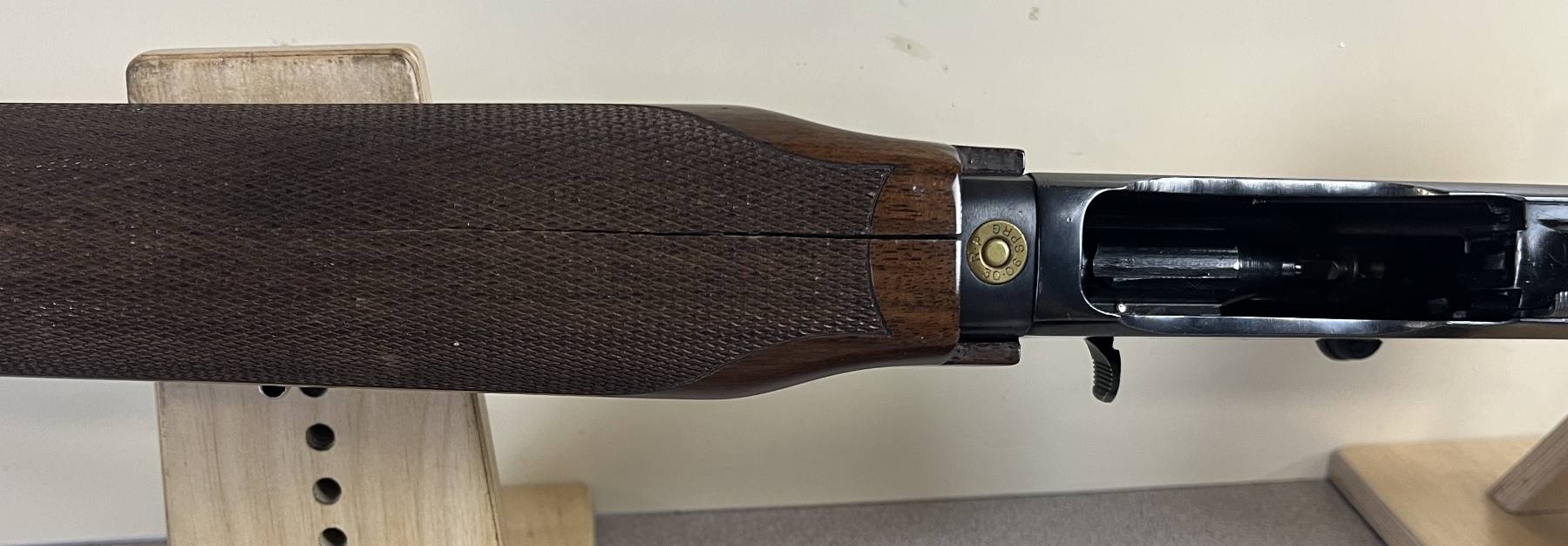 CONDITION: G OVERALL INCL BORE. LARGE CRACK IN FOREND. MISSING REAR SIGHT. SPECS: 22.5IN BBL. INCL 1X MAG. EXTRAS: 1IN SCOPE RINGS W/ BASE.  S/N: A4094623.