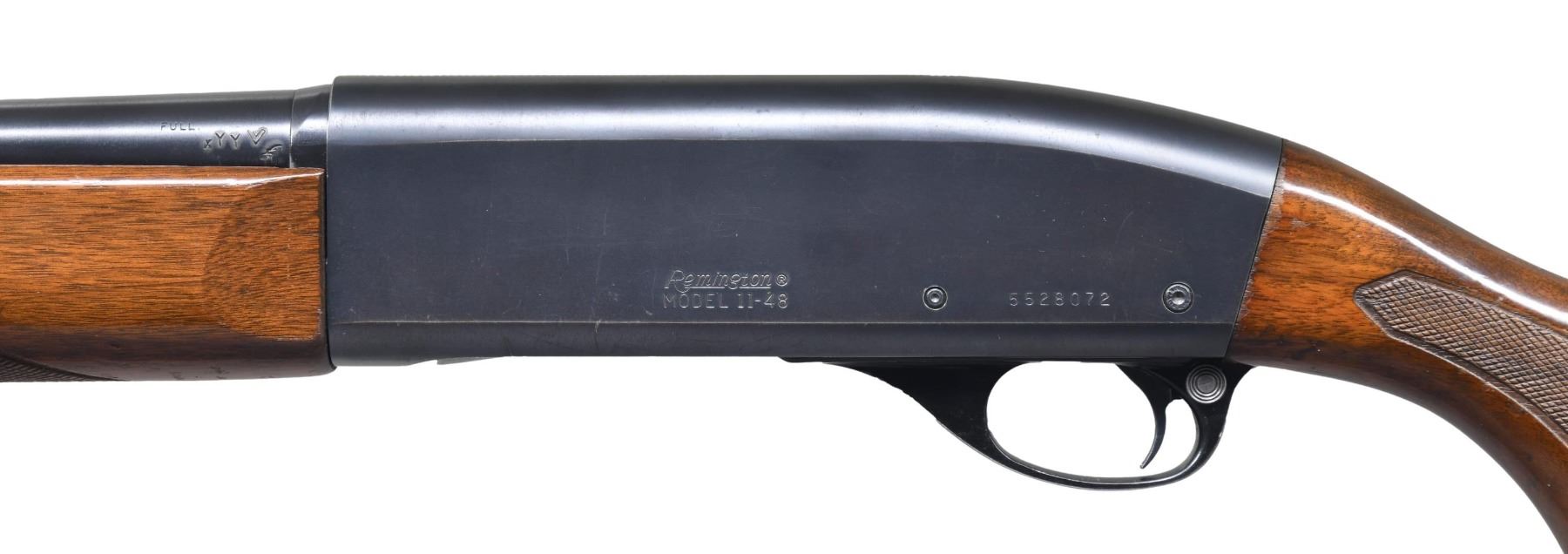 Cal. 16 Ga. 2 3/4". S# 5528072. Bbl. 28". Silver bead front sight. Blued finish. Checkered pistol grip walnut stock & forend. Forend is loose & may require attention to tighten. CONDITION: stock set shows added varnish with scattered moderate flaking, dings & handling marks. Metal retains 85% original blue with scattered edge wear, light oxidation & handling marks. Action functions properly when hand cycled. Very good + bright bore. (25-2113/MJC). MODERN. $300-450.