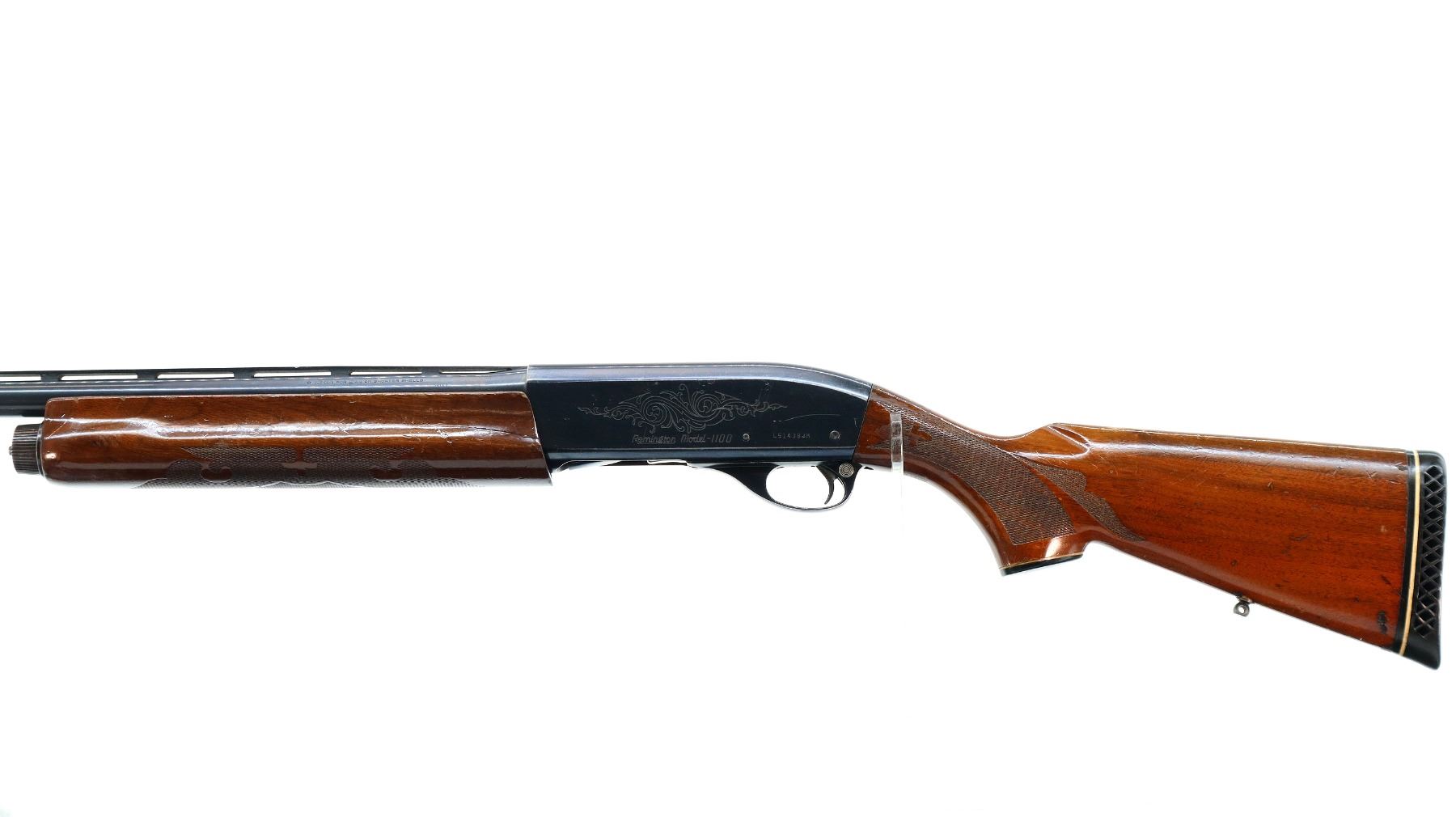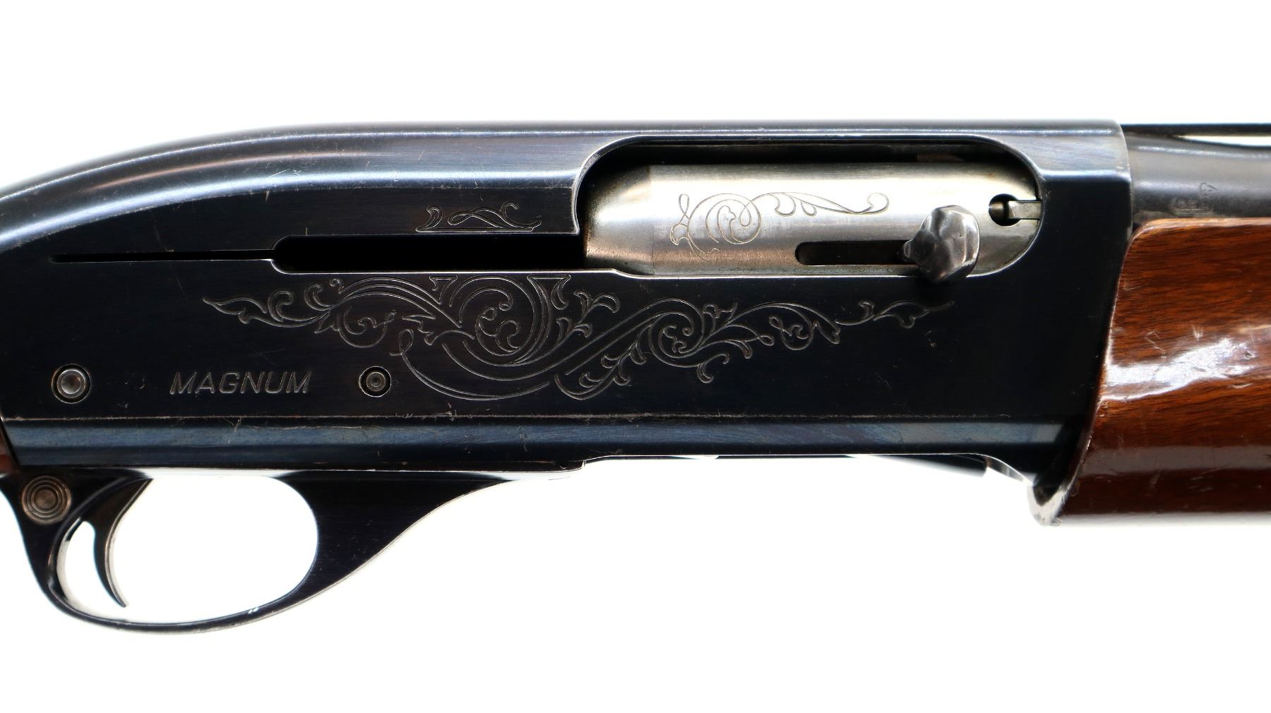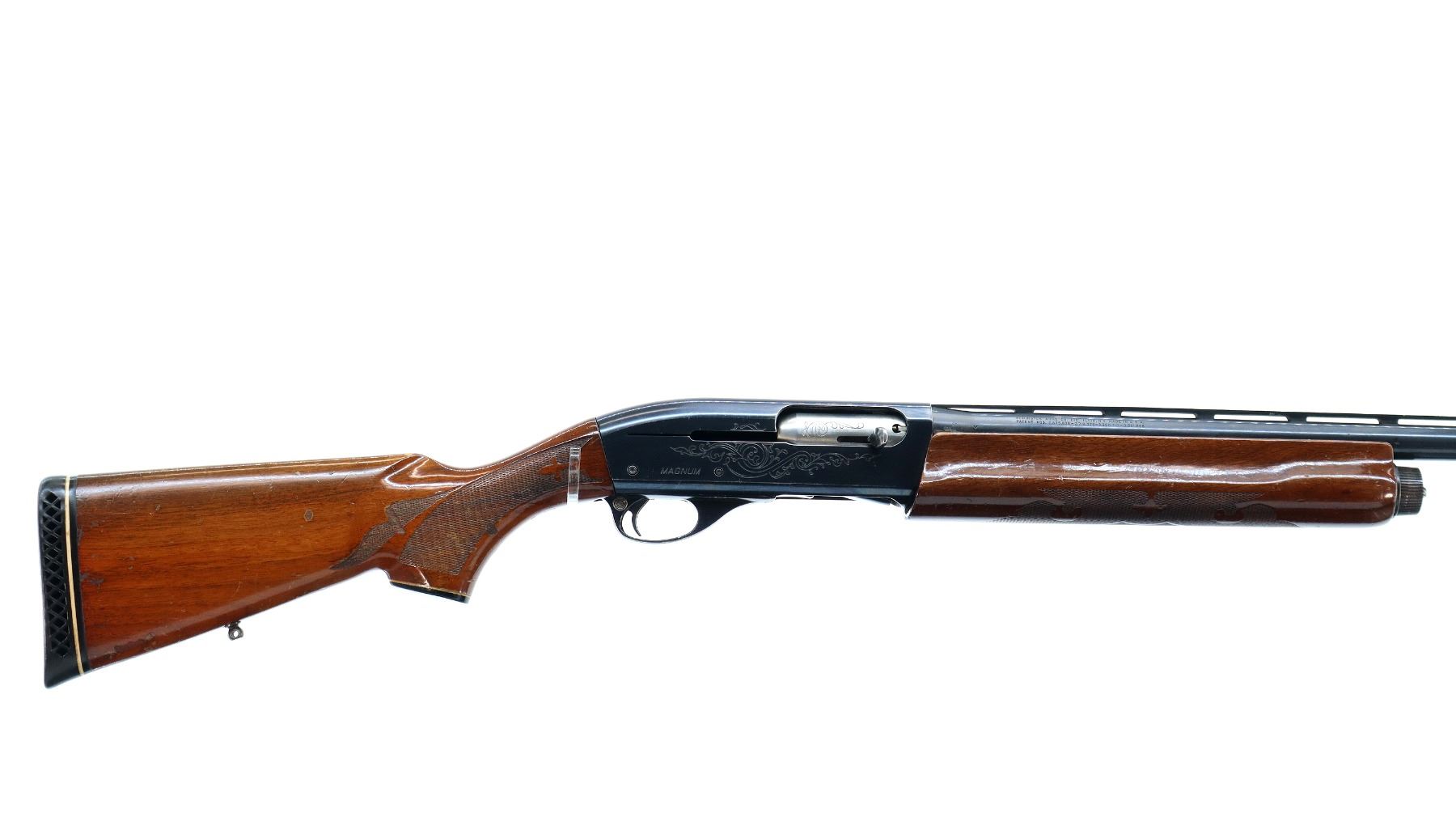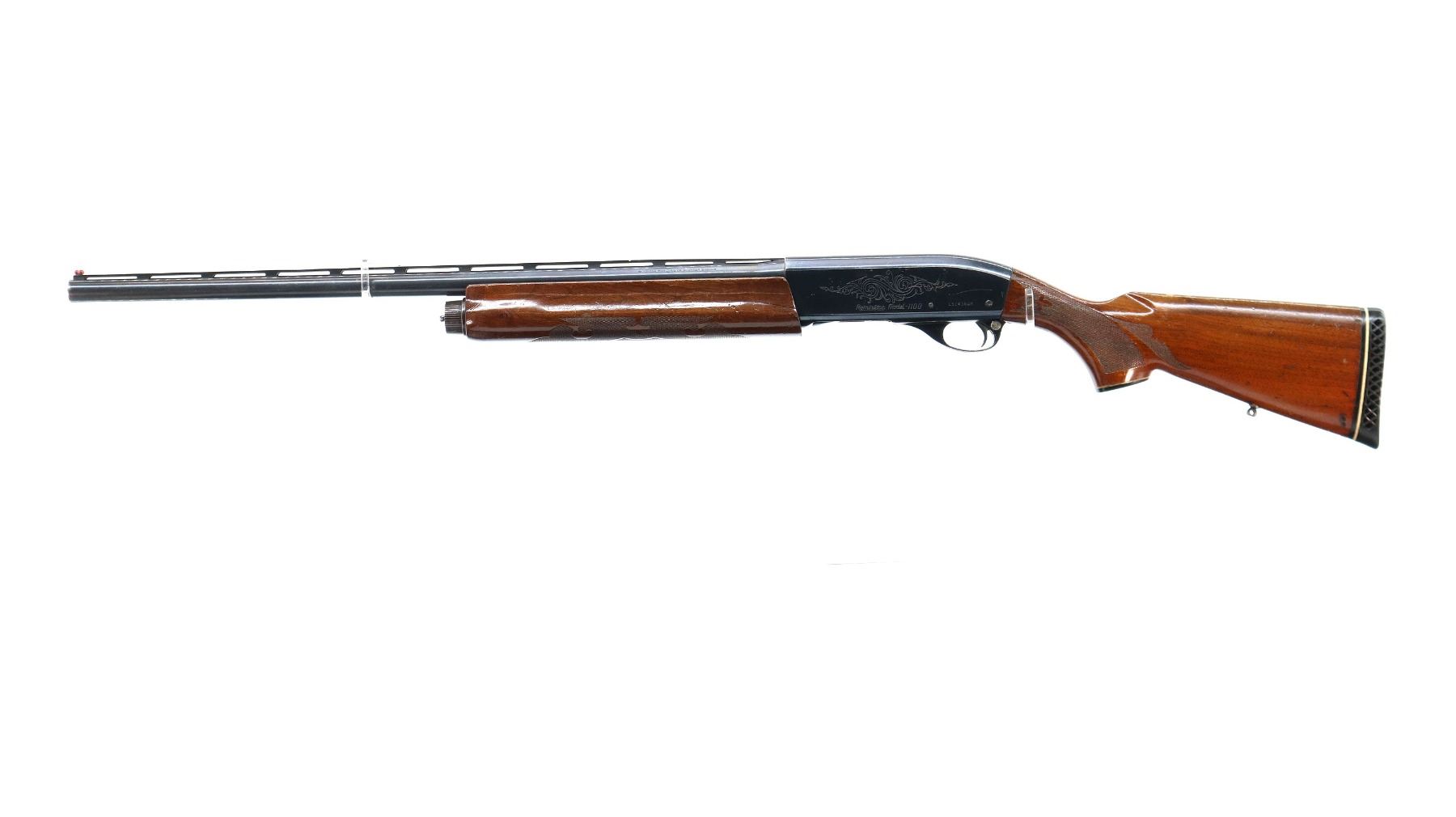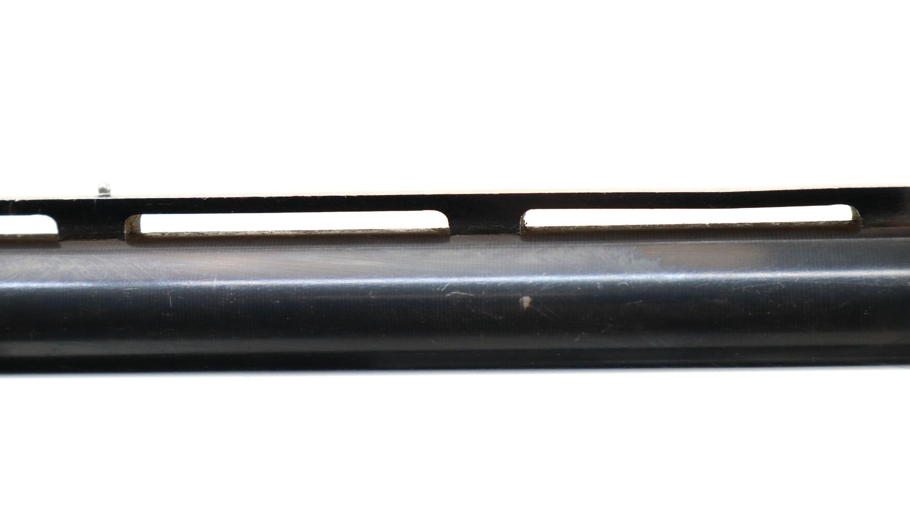 Main Description: Red fiber optic front and silver mid rib beads, blued finish, vent rib, engraved receiver and bolt. Two piece wood stocks, checkered forearm which is cracked, checkered pistol grip, black vented rubber recoil pad, 14" LOP, grip cap, swivel studs. Top of receiver drilled and tapped with no plug screws installed
