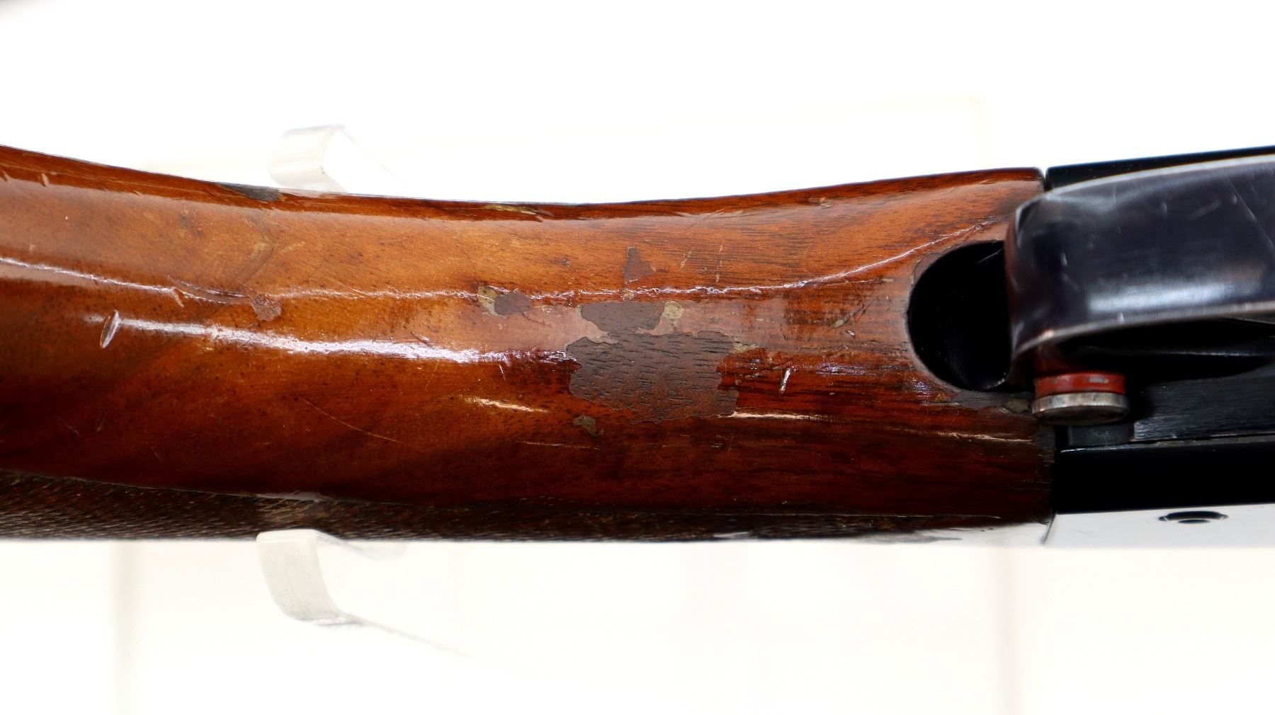 Wear: Metal finish shows a few light rust speckles, scratches, handling marks and wear. Stocks show some marks, scratches and wear.