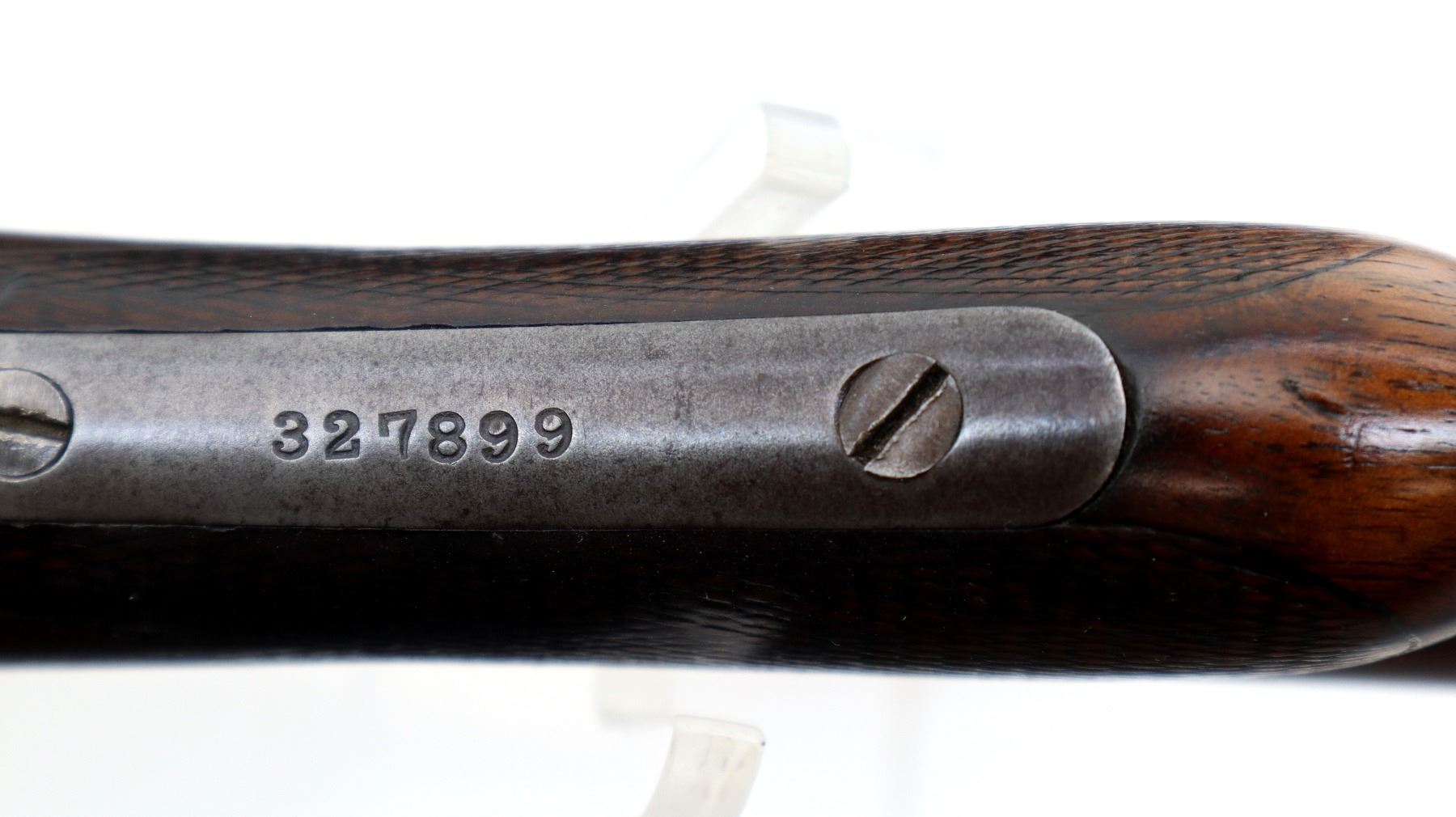 Wear: Metal finish shows some light rust speckles, scratches, handling marks and wear. Stocks show some marks, scratches and wear.