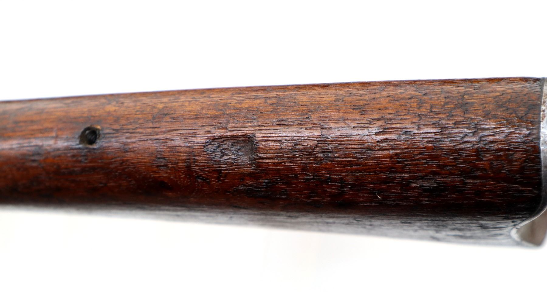 Wear: Metal finish turning silver grey with light pitting, rust speckles, scratches, handling marks and wear. Stocks show marks, scratches and wear.