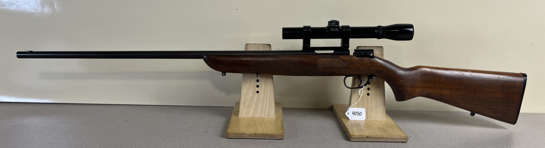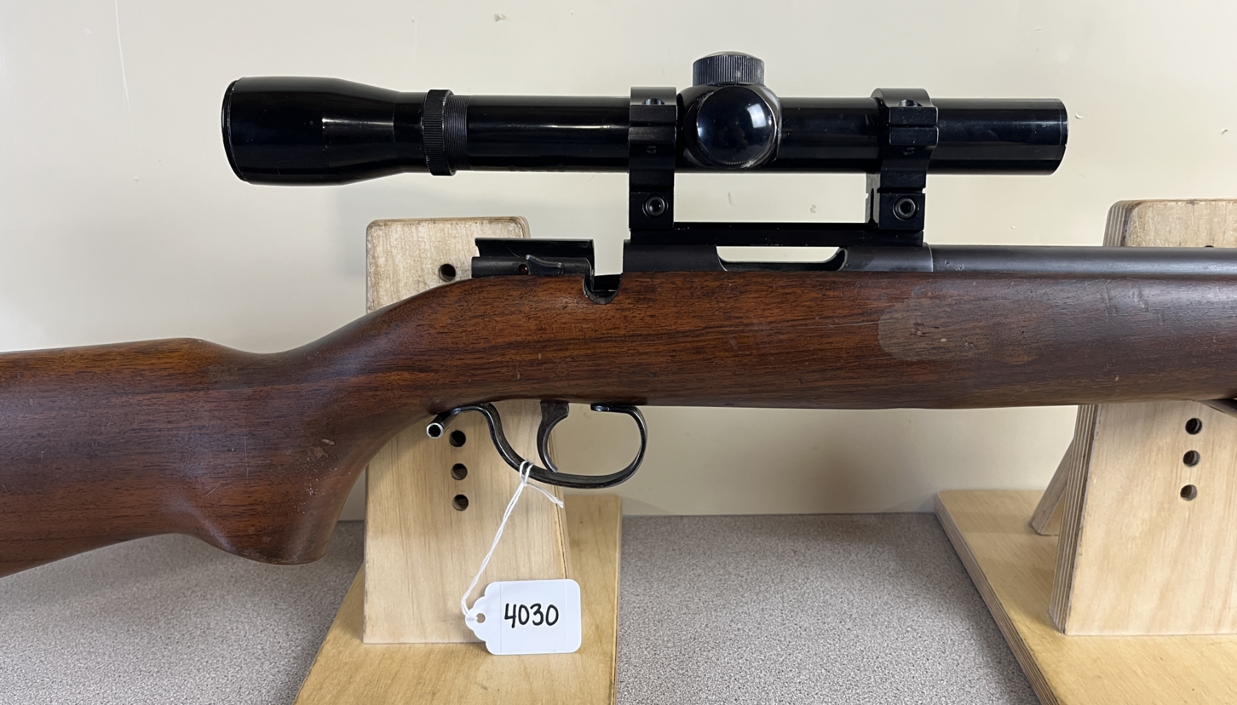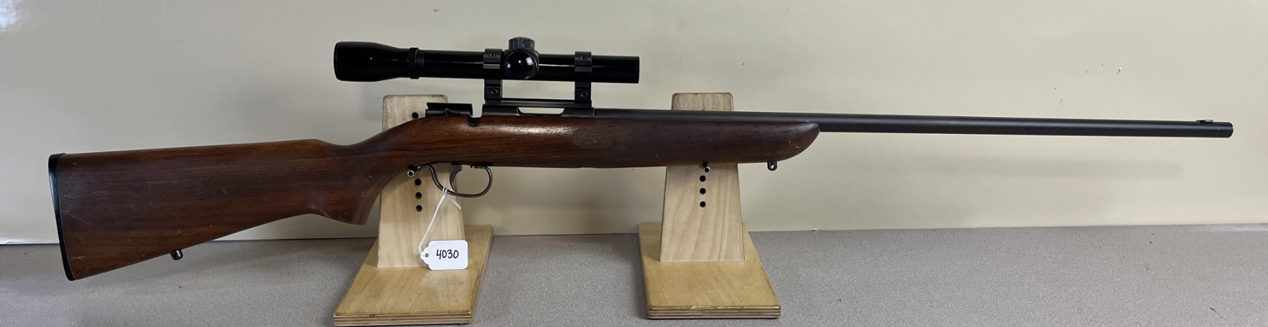 CONDITION: F OVERALL INCL BORE. MISSING BOLT & IRON SIGHTS. SPECS: 25IN BBL. EXTRAS: BUSHNELL 2.5X BANNER SCOPE. CLEAR W/ CROSSHAIRS. S/N: 4949120.
