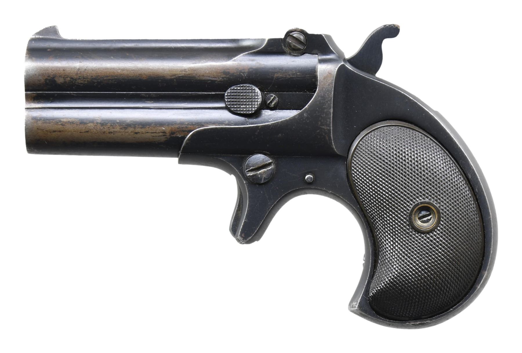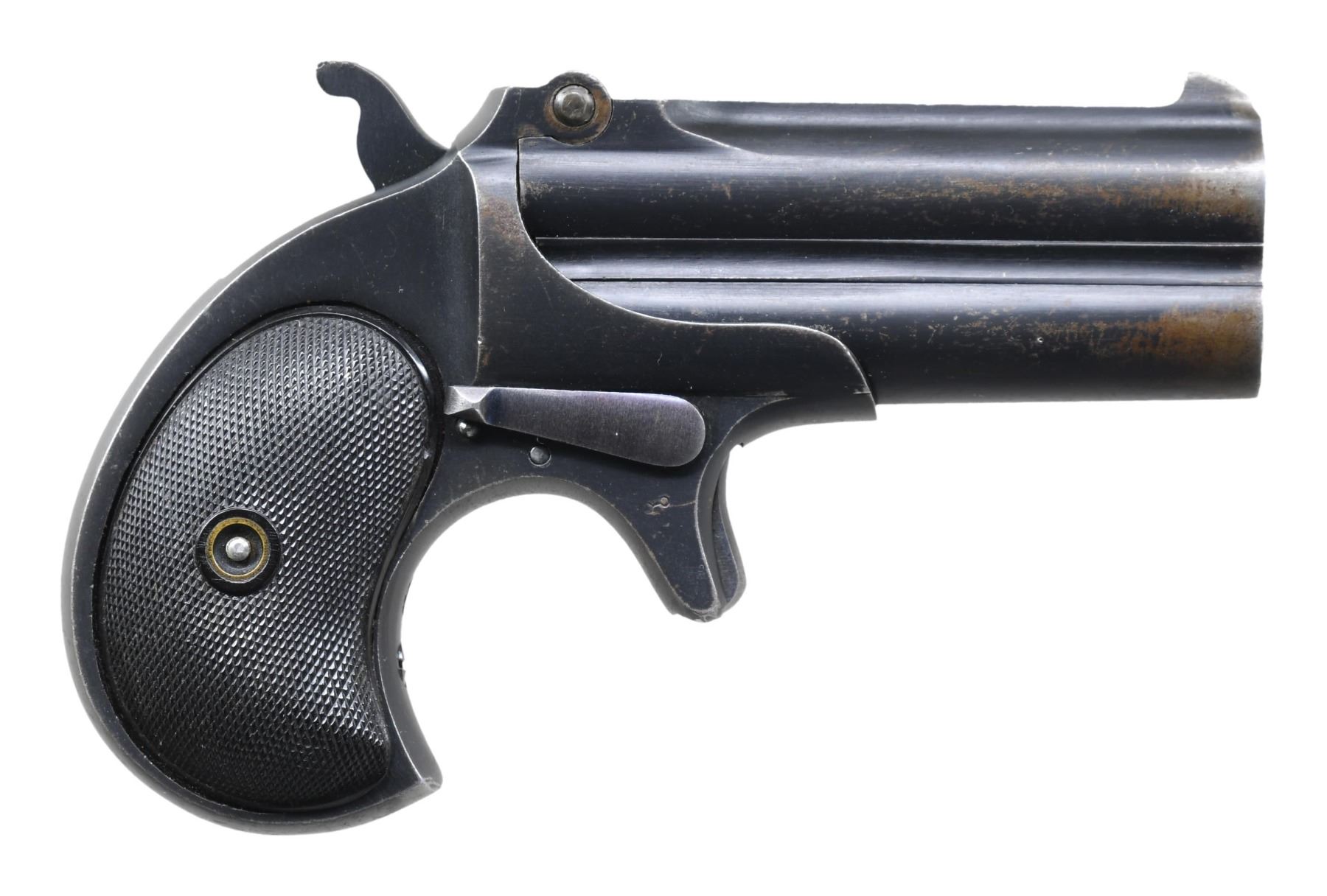 Cal. 41 RF. S# 95156 (under grips). Matching numbered 3" bbls. Blued finish. Two piece hard rubber grips. CONDITION: Good fading blue with large streaks of wear on sides of barrel & portions of frame with significantly more wear on left side. Good grips with sm. chip on left panel. Bore shows strong rifling & pitting throughout. (25-2558/MD). CURIO. $500-750.