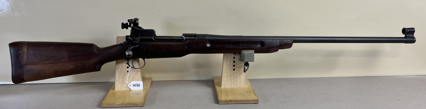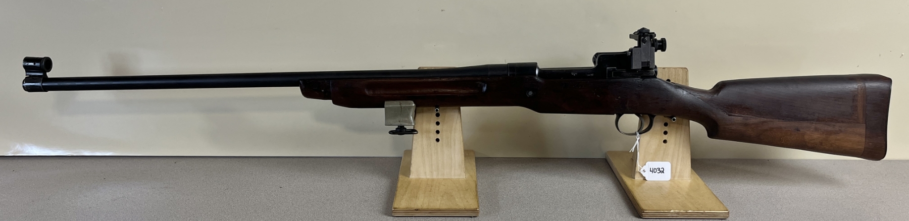 CONDITION: F OVERALL. BORE G. SPECS: 27.5IN HEAVY BBL W/ TARGET SIGHTS. CUSTOM TARGET STOCK. EXTRAS: NONE. S/N: 561500.