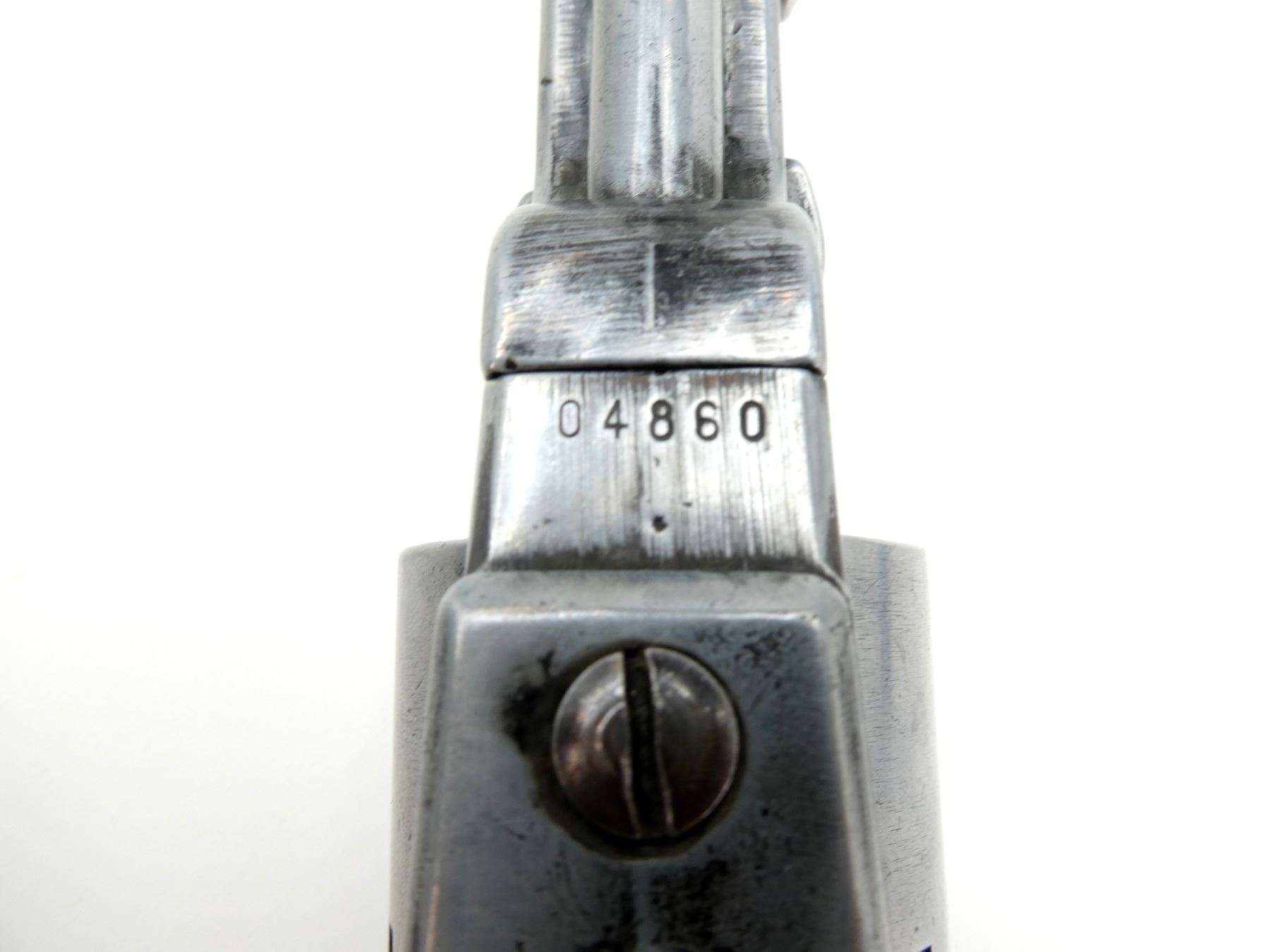 LOT INCLUDES; (1) REPRODUCTION REVOLVER, MARKED: "04860", BROWN POLYMER GRIPS, LOADING LEVER WITH CATCH (WORKS), NO COCKING ISSUES, CYLINDER ROTATES, NOT FULLY TESTED & (1) WOODEN DISPLAY CASE, RED VELVET LINED, LOCKABLE, WITH KEY, DIVIDERS INSIDE, APPROX. 15 1/8" X 7 1/8" X 2 3/8". SEE PHOTOS.