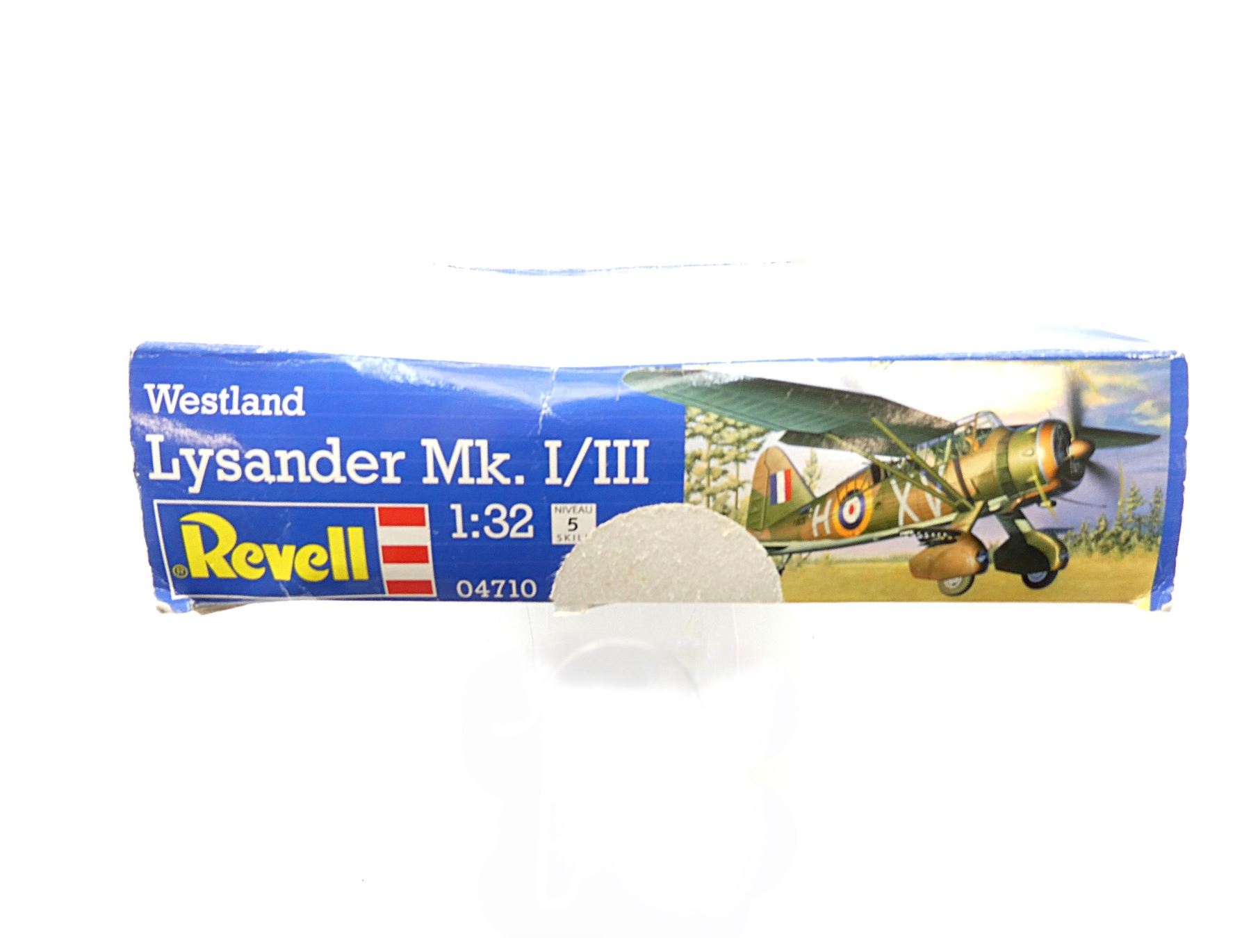 (1) WESTLAND LYSANDER MK.I/III MODEL PLANE, MADE BY REVELL, 1:32 SCALE, IN ORIGINAL PACKAGING WITH INSTRUCTIONS, APPEARS NEW OLD STOCK PIECES SEALED IN UN-OPENED PLASTIC PACKAGING, KIT MAY NOT BE COMPLETE / PIECES MAY BE MISSING. SEE PHOTOS.