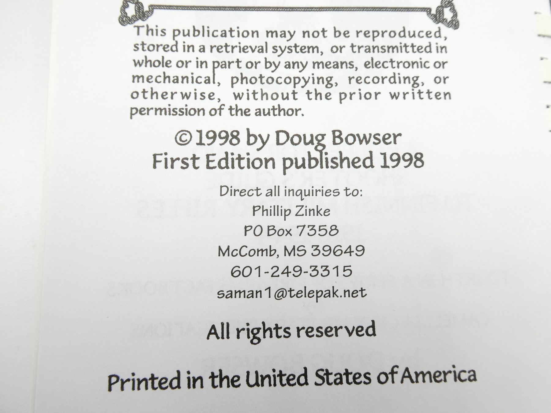 (1) "A COLLECTOR'S AND SHOOTER'S GUIDE TO FINNISH MILITARY RIFLES 1918-1944" BOOK BY DOUG BOWSER, INSCRIBED & SIGNED BY AUTHOR, FIRST EDITION, SPIRAL BOUND, COPYRIGHT 1998. SEE PHOTOS.