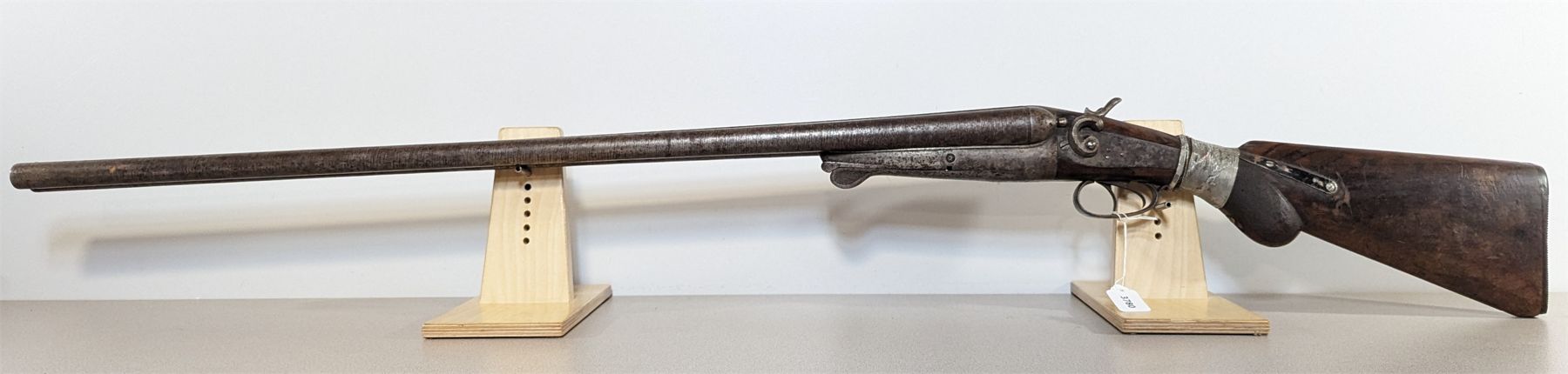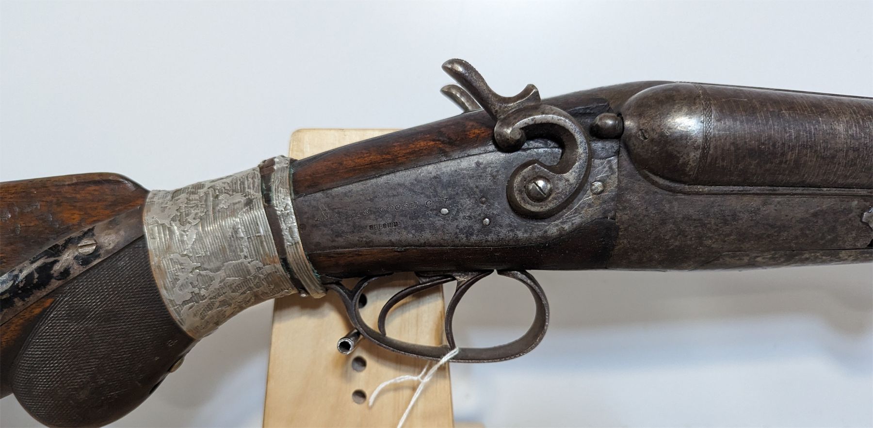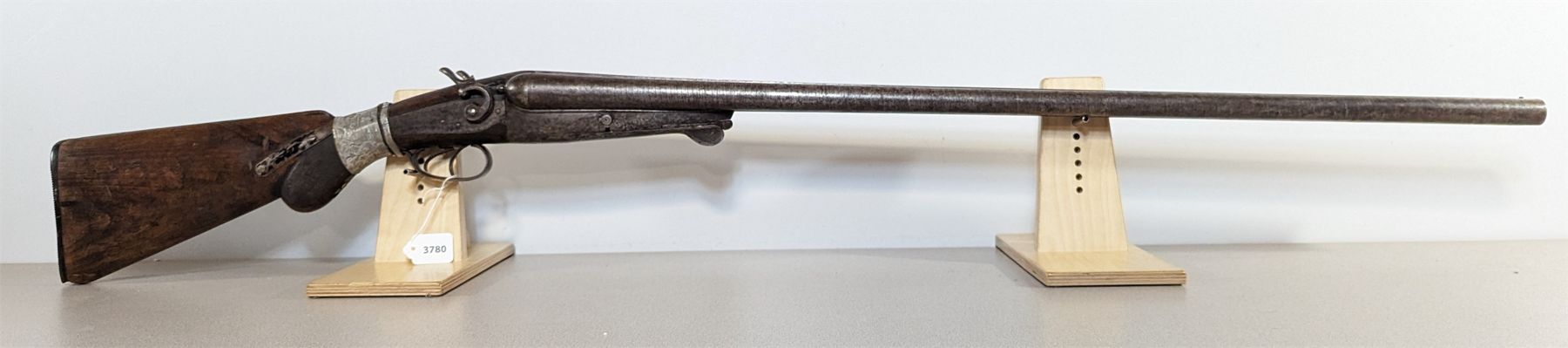 CONDITION: F OVERALL INCL BORES. REPAIR ON WRIST. SPECS: 36 INCH DEMASCUS BARREL. FIXED CYLINDER CHOKES. EXTRAS: NONE. S/N: NONE.