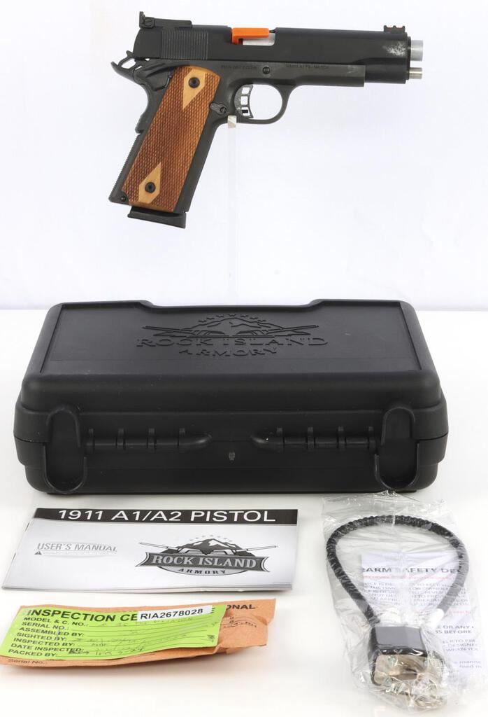 New in box containing owners manual, inspection certificate, a lock, and one magazine. FFL required for transfer. No international shipping. Know your state laws before bidding. Caliber: .45 ACP Serial #: RIA2678028 This lot has a reserve.