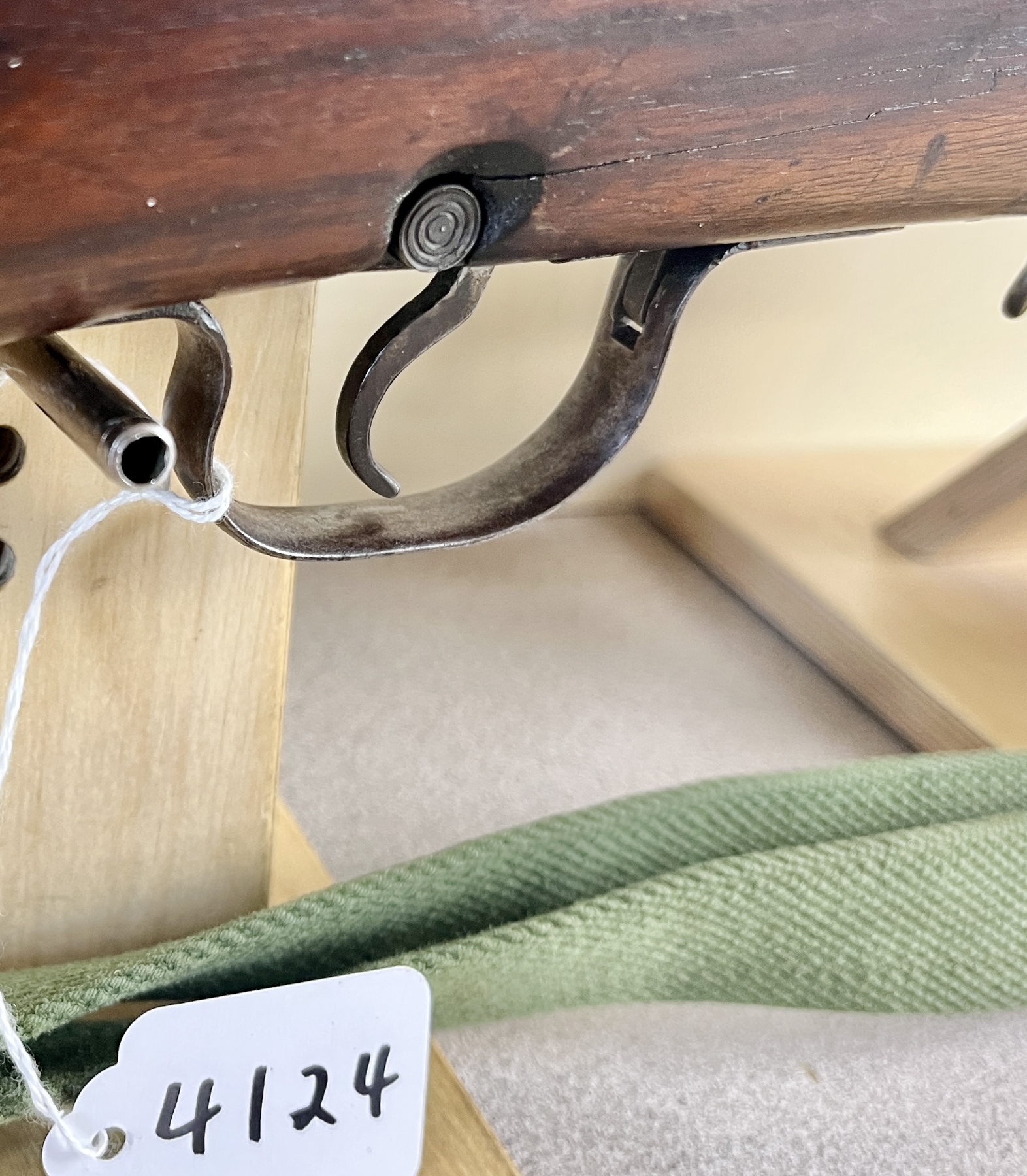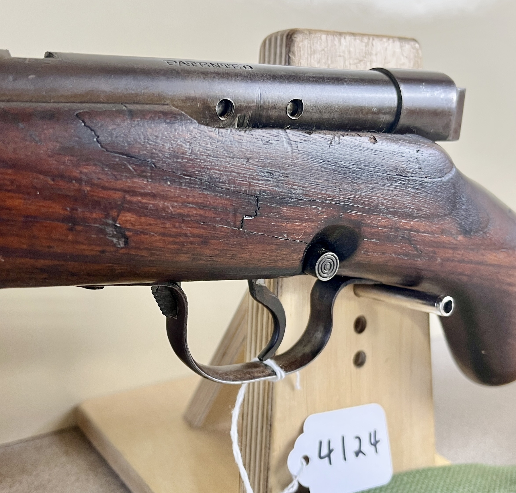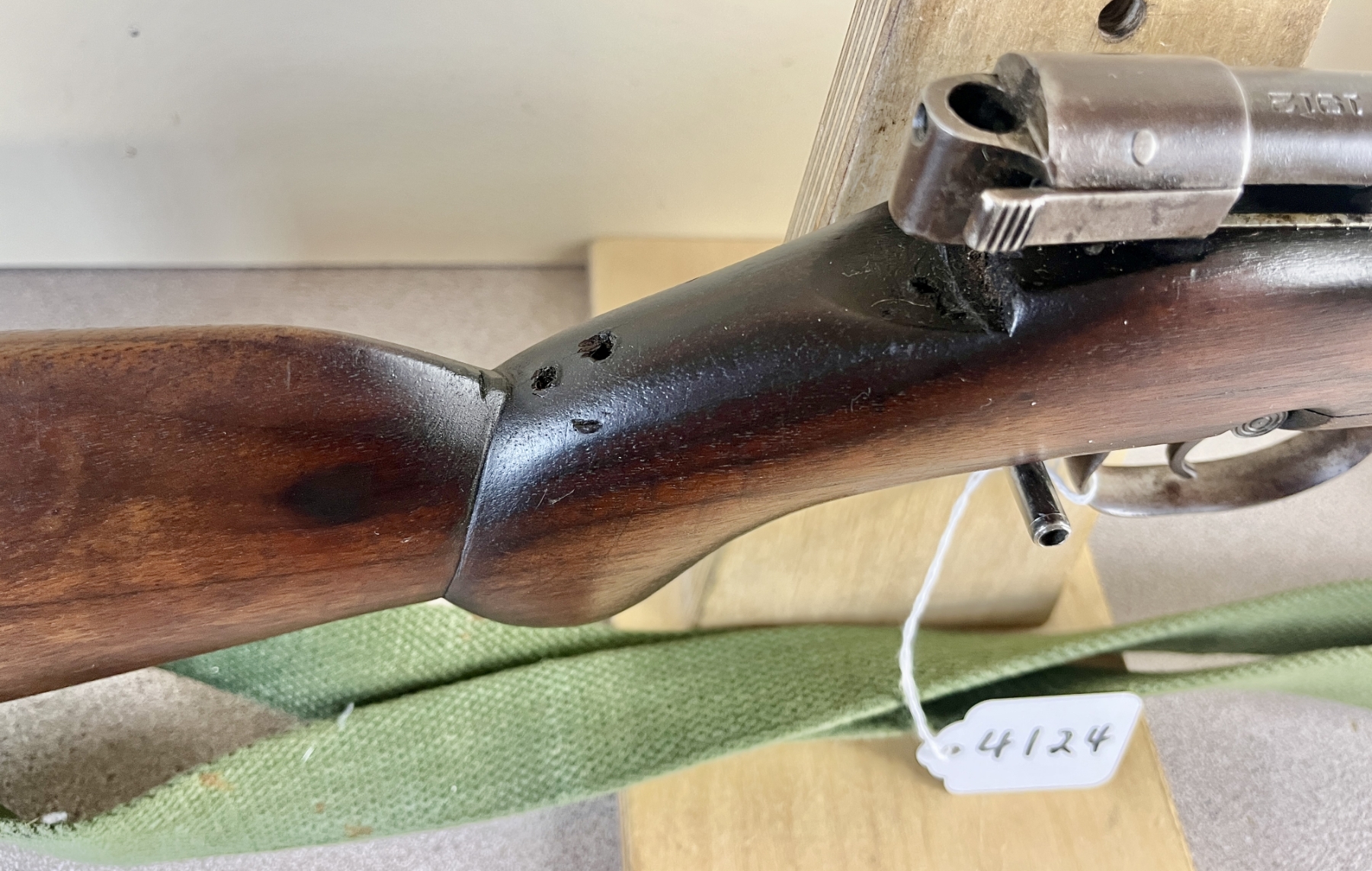 CONDITION: F-G OVERALL INCL BORE. NOTE: MISSING REAR SIGHT, LEFT SIDE RECEIVER SHOWS 2X DRILLED AND TAPPED HOLES, STOCK SHOWS SEVERAL CRACKS ON BOTH SIDES NEAR RECEIVER. SPECS: 21-1/2IN BBL. EXTRAS: CANVAS SLING. S/N: NONE