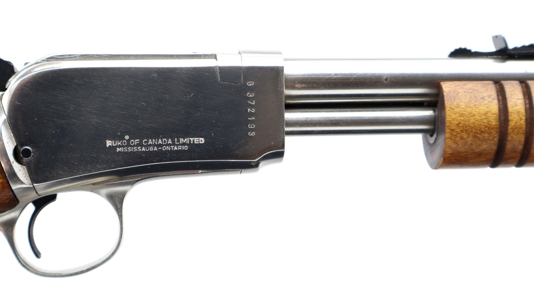 Main Description: Blade front sight, adjustable u notched rear sight, stainless finish, receiver drilled and tapped with no plug screws installed, grooved spur hammer. Two piece wood stocks, grooved forearm, straight grip, grooved black polymer butt plate, 13.25" LOP, full length magtube.