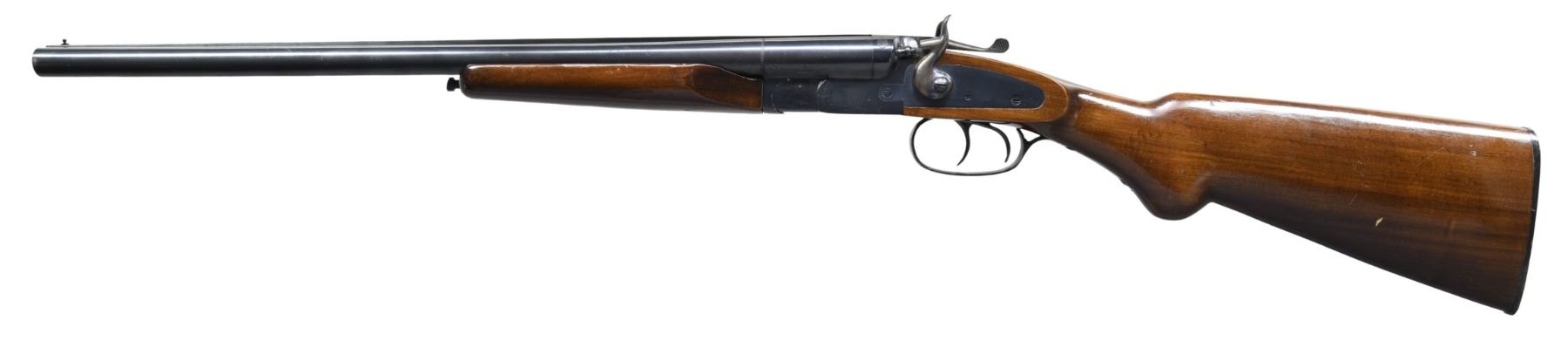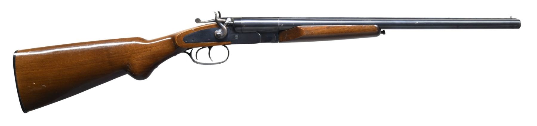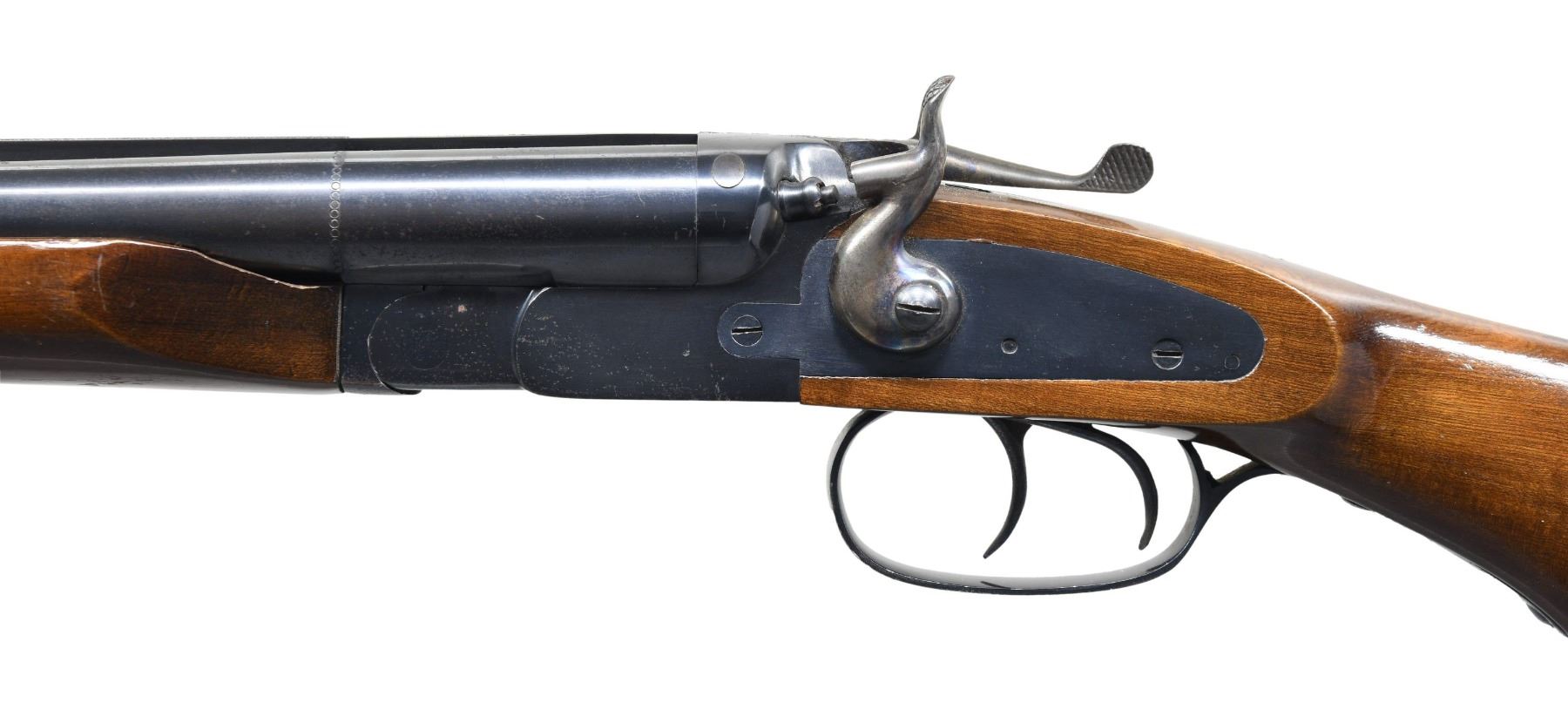 Cal. 20 Ga., 3". S# S16687. Bbls. 20" w/ brass bead. Full & Mod chokes. Blued finish. Exposed hammer action w/ dbl. triggers & extractors. Hardwood stock set. CONDITION: good overall with handling marks & pinprick oxidation. Shiny bores with light fouling. (25-3584/MD). MODERN. $200-400.