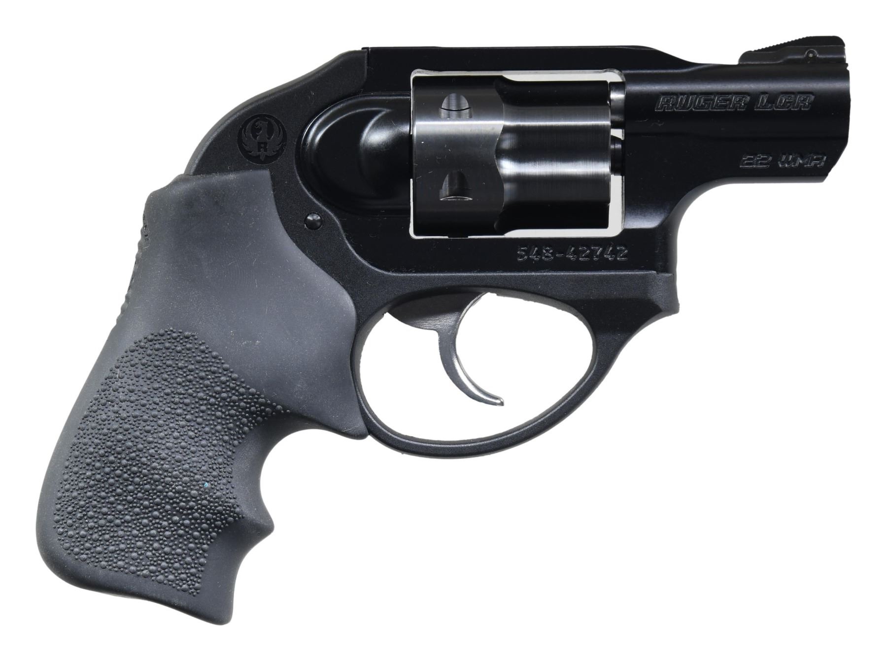 Cal. 22 Mag. S# 548-42742. Bbl. 1.87" with pinned serrated blade front sight; frame notched rear. Mfg. 2013 (2013-2021) as Model 05414 having Synergistic Hard Coat finish, smooth faced stainless trigger, concealed hammer, special 6 rd. cylinder fluting and Ruger marked factory supplied Hogue Tamer finger grooved rubber grip; currently in production in other calibers. UNATTACHED ACCESSORIES: original box with packaging to include Ruger black nylon range pouch. CONDITION: all aspects near excellent appearing new and unfired. (25-3389/NW). MODERN. $250-400.