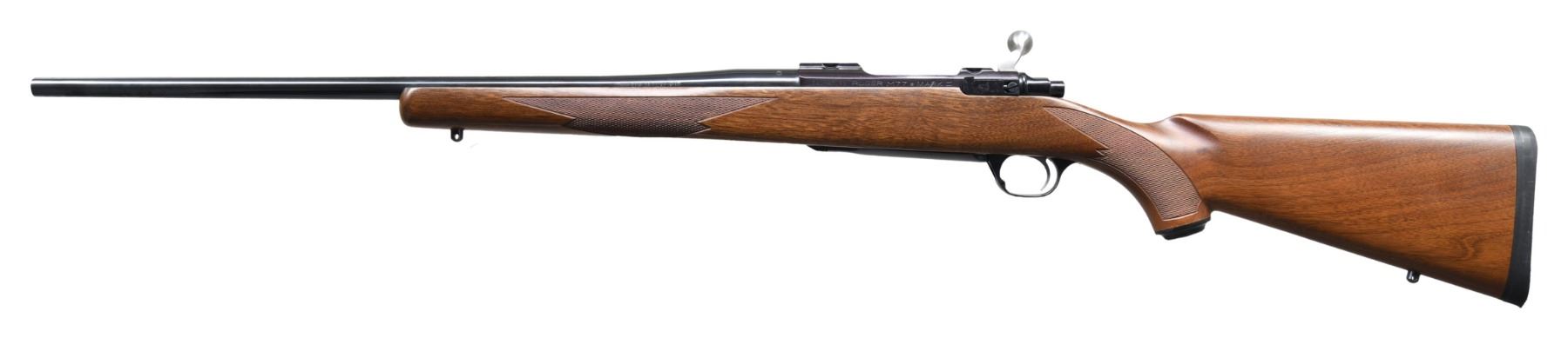 Cal. 7mm Rem SA Ultra Mag. S# 790-47183. Bbl. 22". Integral scope bases. Ruger catalog # M77R MKII & model # 17812 made in 2003. Blued finish. Checkered pistol grip walnut stock with bottom mounted sling studs & factory recoil pad. LOP: 13 5/8". UNATTACHED ACCESSORIES: matching numbered factory box with manual, set of blued Ruger rings & trigger lock. CONDITION: all aspects near excellent. (24-3695/MJC). MODERN. $500-700.