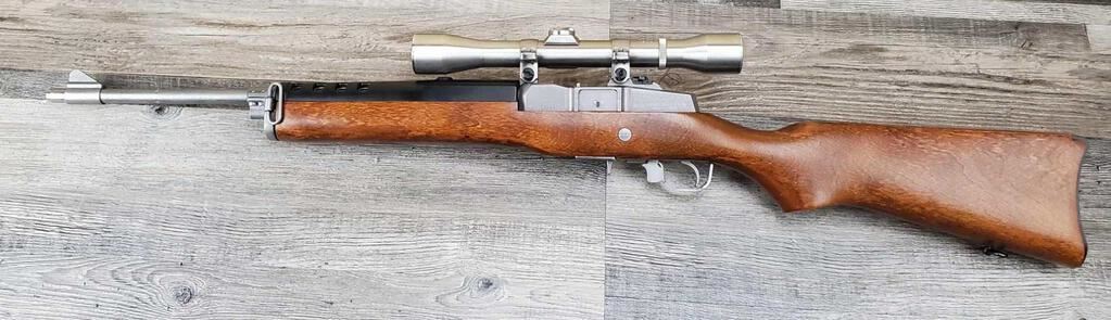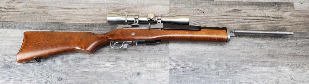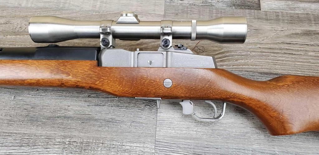 STAINLESS, WITH VINTAGE STAINLESS WEAVER SCOPE. MINT BORE.