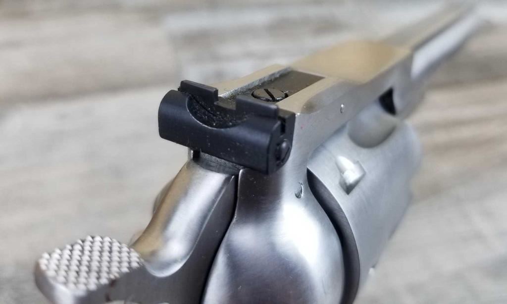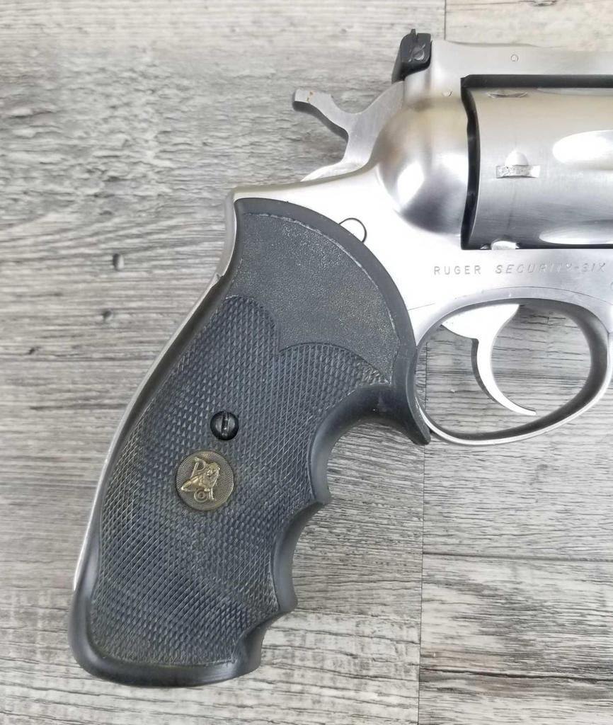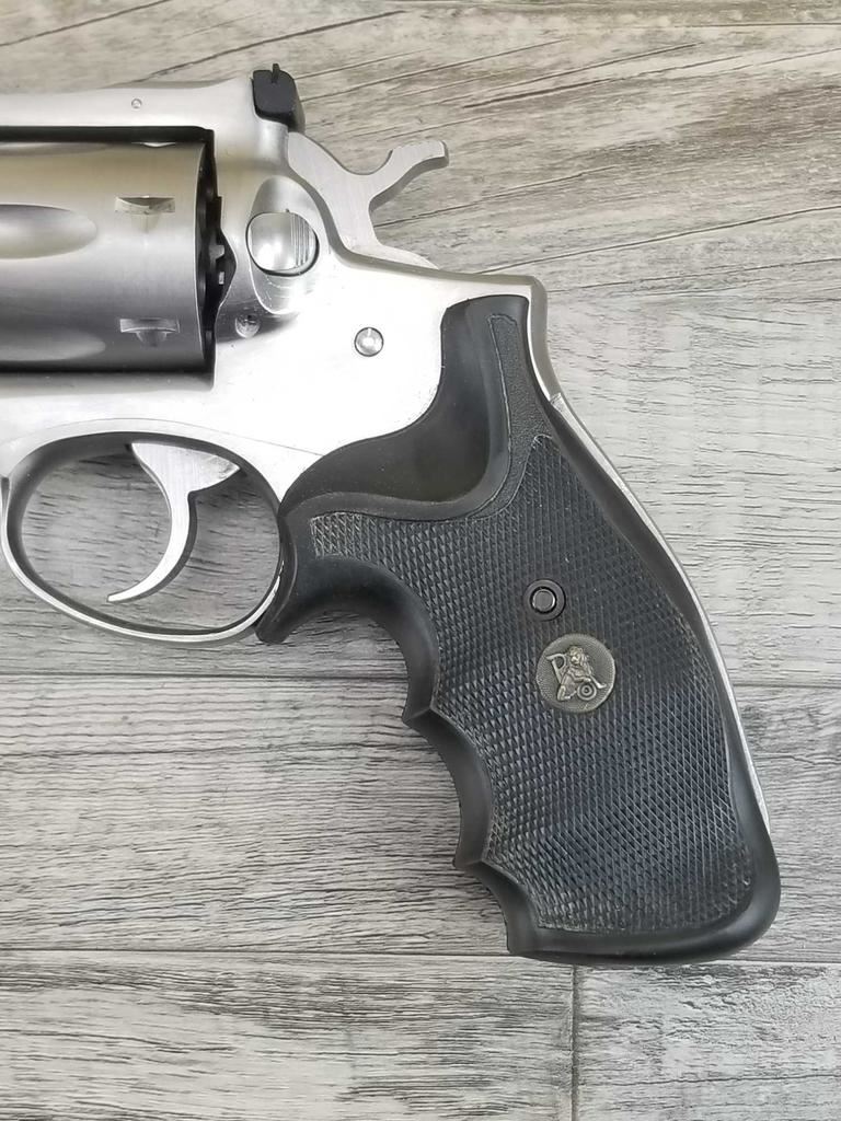 FINISH LOOKS TO HAVE BEEN COMPLETELY BUFFED OFF. REPLACEMENT GRIPS. MINT BORE.
