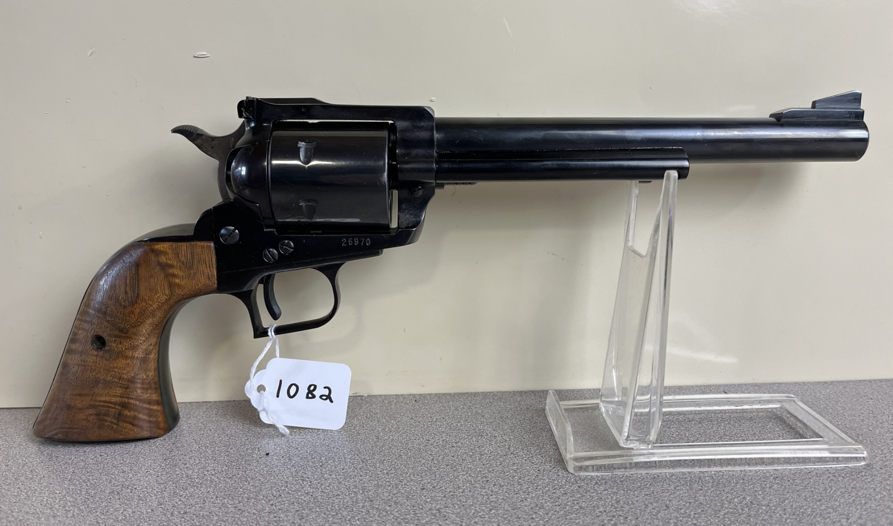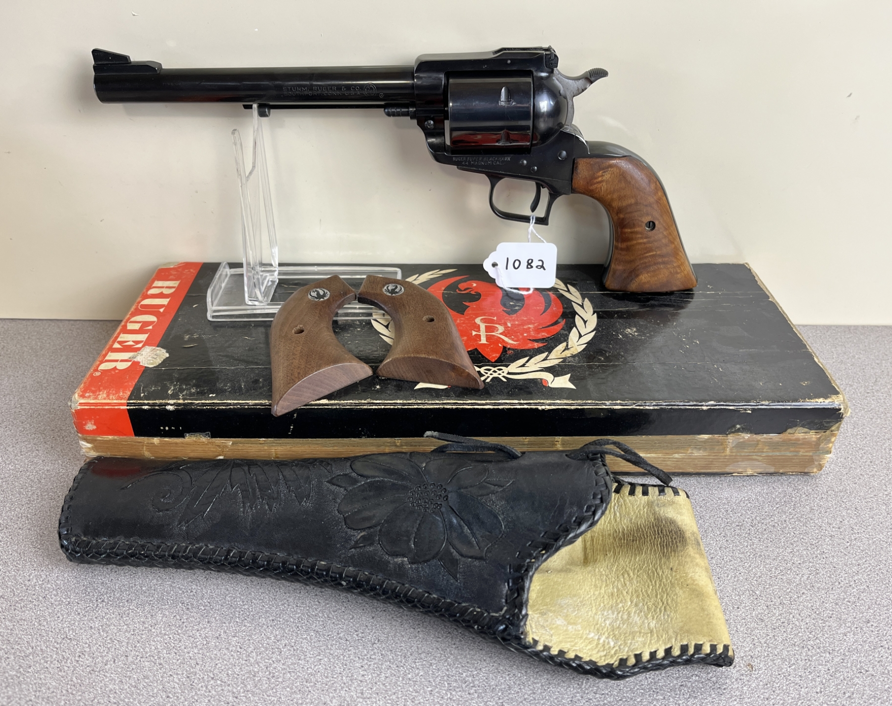 CONDITION: VG OVERALL INCL BORE. SPECS: 190MM BBL. 6 SHOT REVOLVER. EXTRAS: ORIGINAL BOX, SPARE GRIPS, LEATHER HOLSTER. S/N: 26970