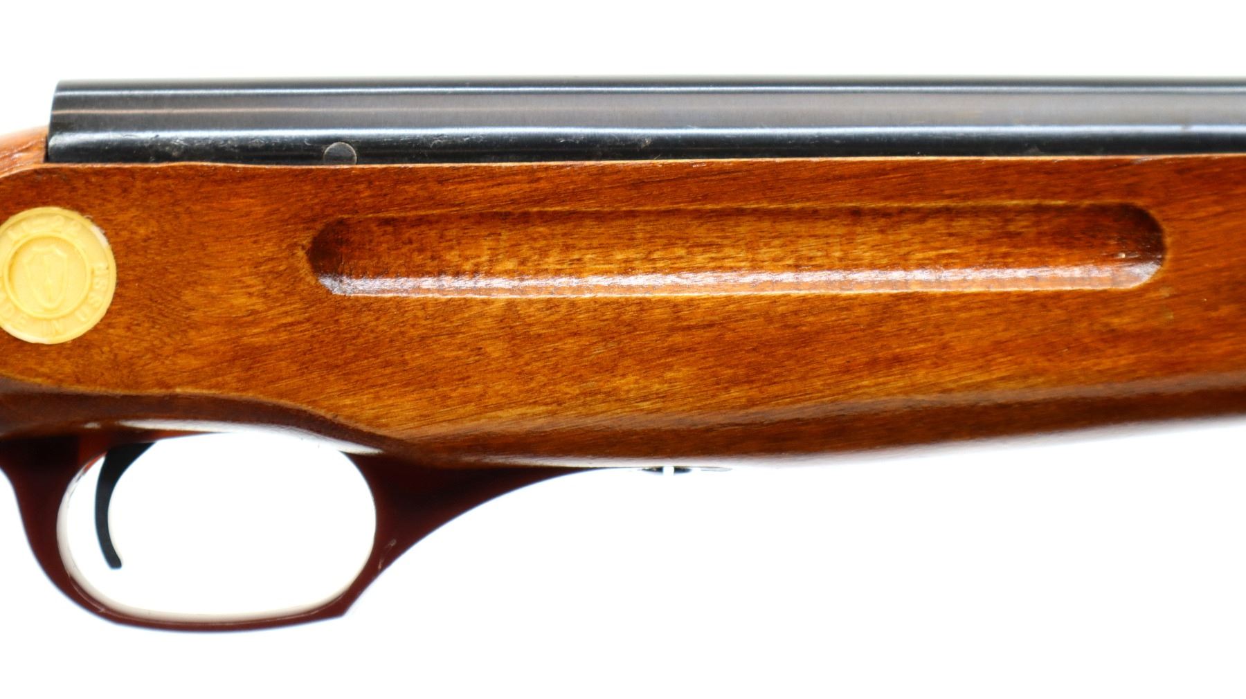 Main Description: Blade front sight, adjustable u notched rear sight, blued finish. One piece wood stock, finger grooved forearm, pistol grip, grooved brown polymer butt plate, grip cap. Parts include: springs, leather washer.