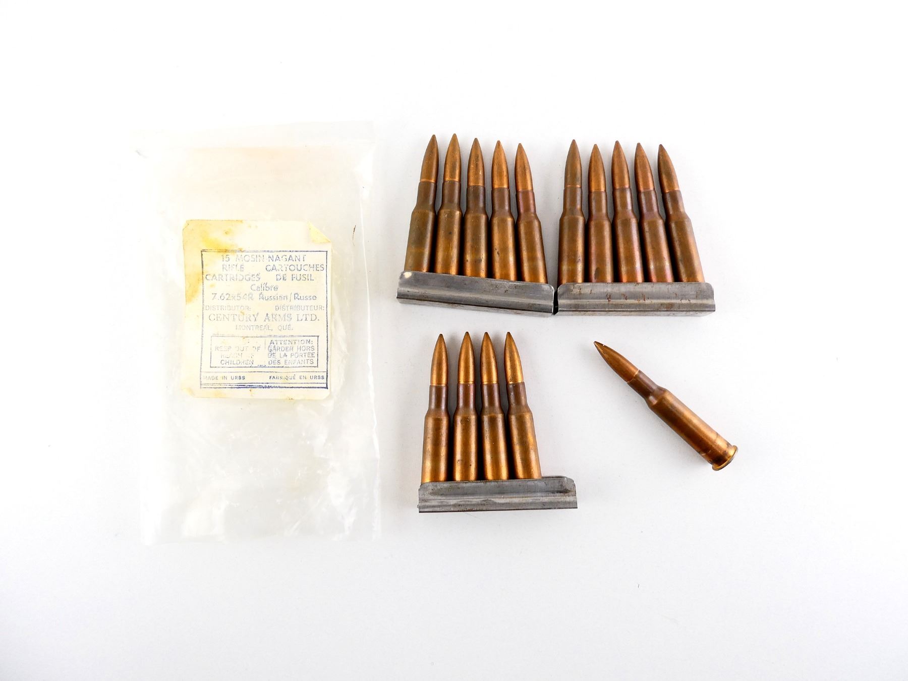LOT INCLUDES; APPROX. (15) RNDS, FMJ, (3) STRIPPER CLIPS.