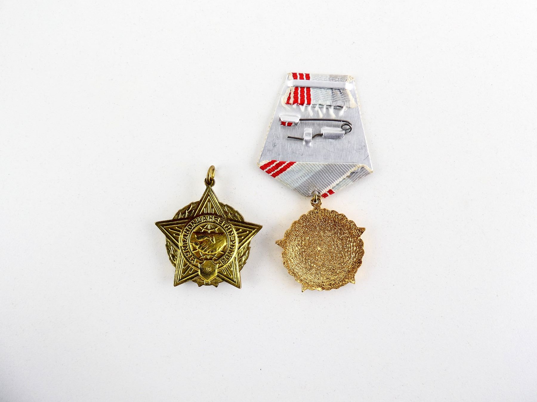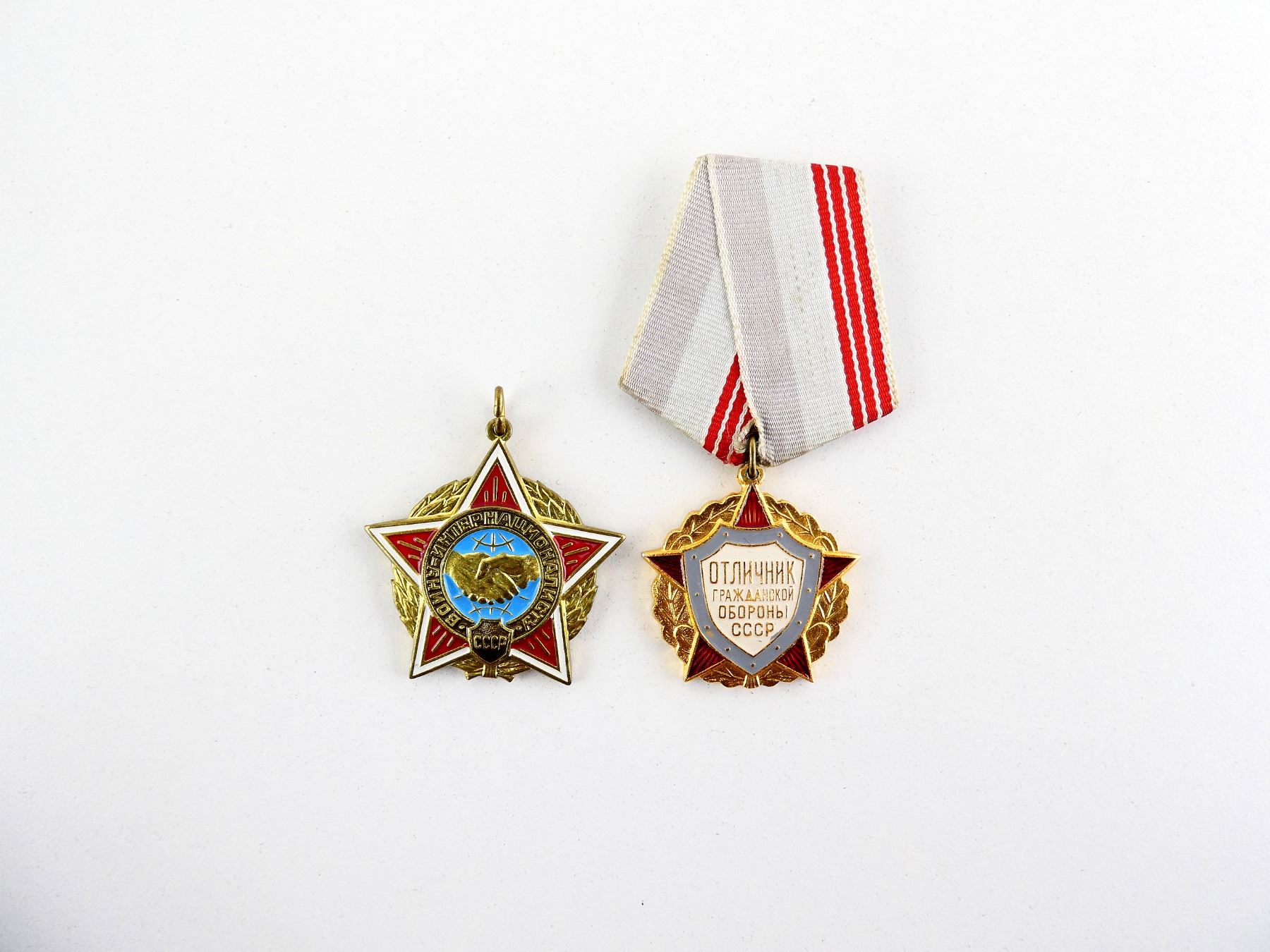 LOT INCLUDES; (1) EXCELLENT STUDENT OF CIVIL DEFENSE MEDAL WITH RIBBON & (1) 1988 WARRIOR-INTERNATIONALIST MEDAL, MISSING RIBBON. SEE PHOTOS.