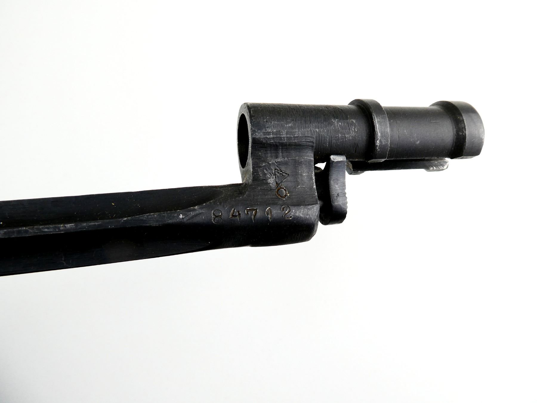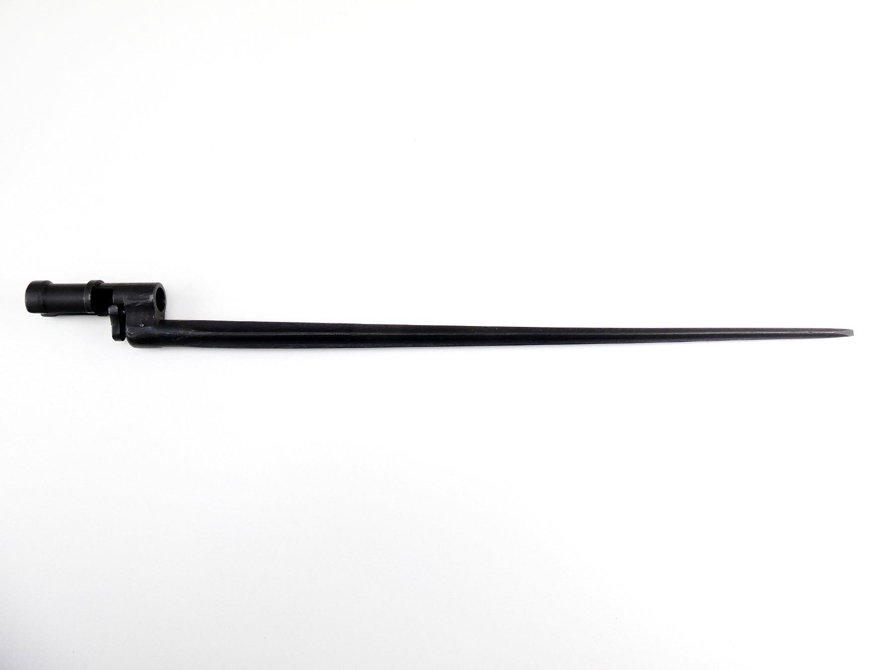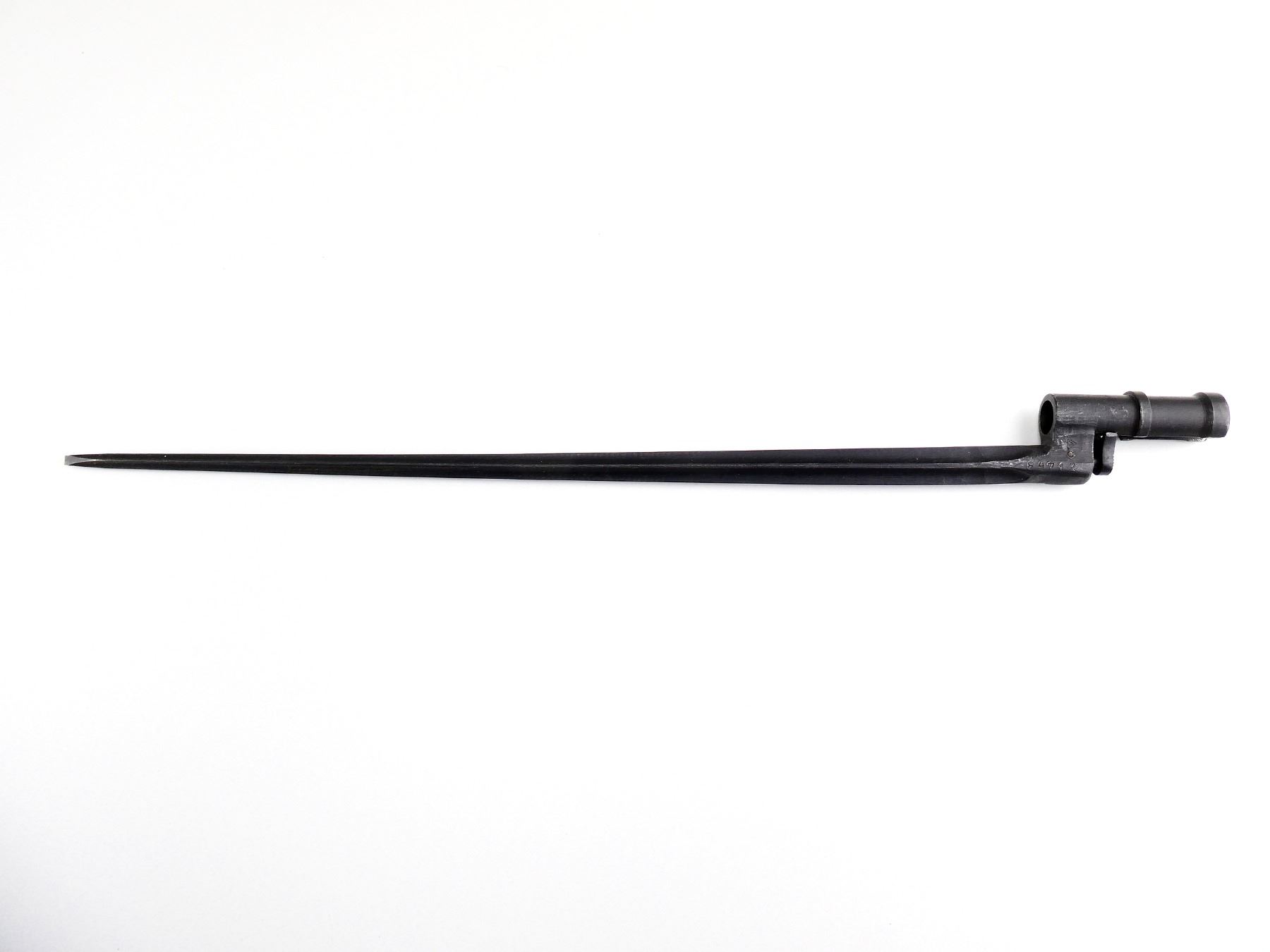 (1) FITS 7.62MM M1891/30 MOSIN NAGANT RIFLES, CRUCIFORM BLADE, BLUED STEEL, SOCKET MARKED: "84712" & OTHER FAINT PROOF MARKS, NO SCABBARD, BLADE APPROX. 17 1/8" & OAL APPROX. 20". SEE PHOTOS.