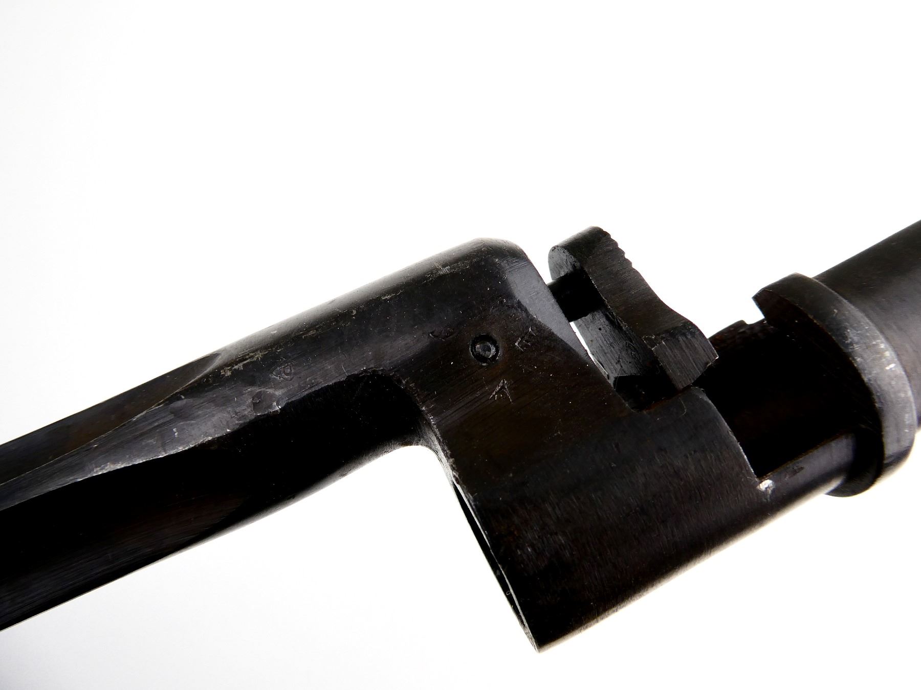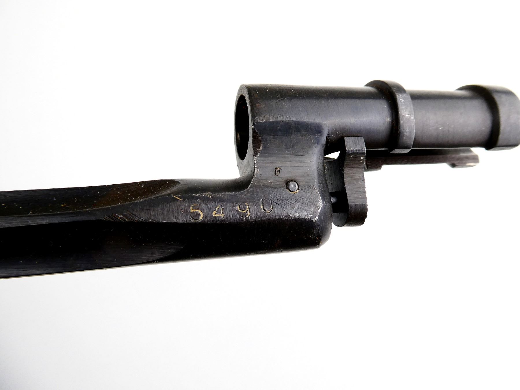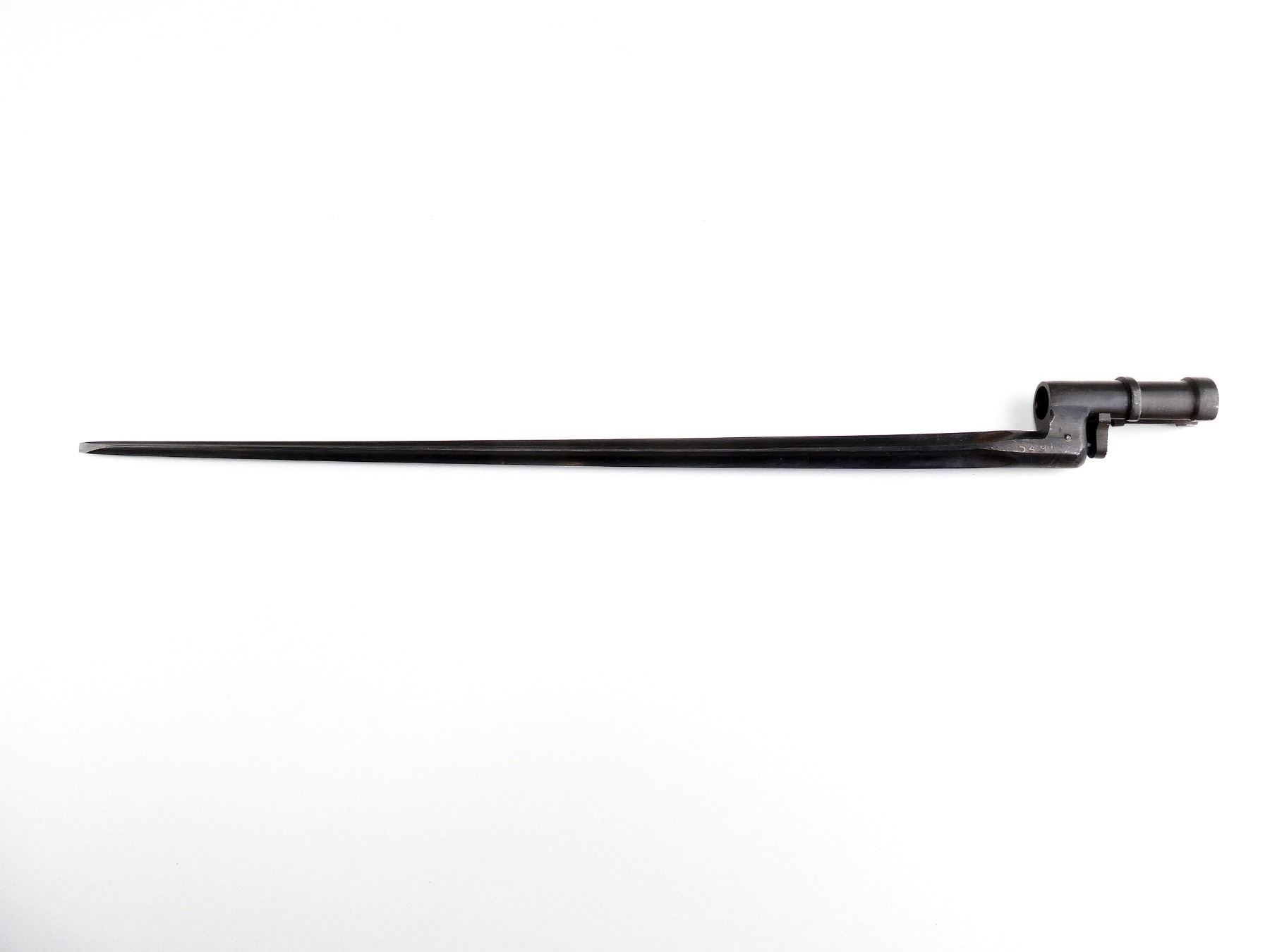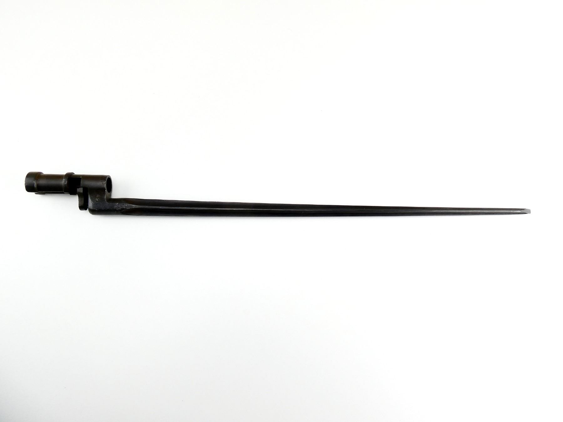 (1) FITS 7.62MM M1891/30 MOSIN NAGANT RIFLES, CRUCIFORM BLADE, BLUED STEEL, SOCKET MARKED: "5490" & OTHER FAINT PROOF MARKS, NO SCABBARD, BLADE APPROX. 17" & OAL APPROX. 19 7/8". SEE PHOTOS.