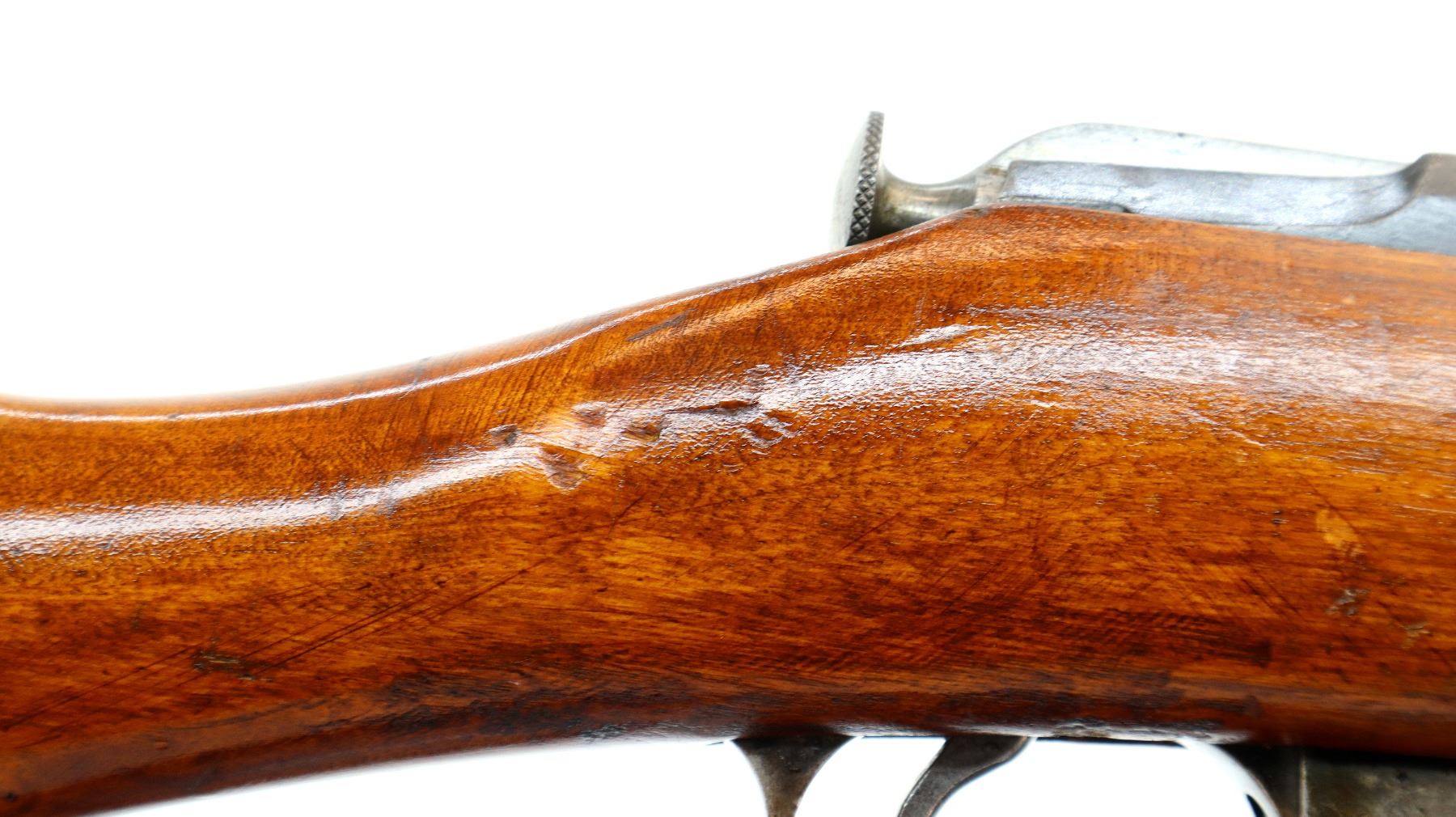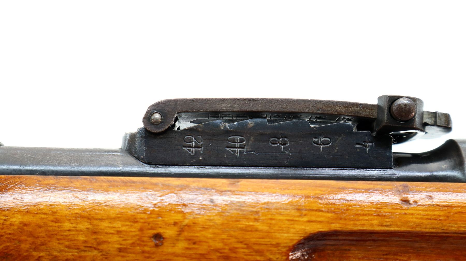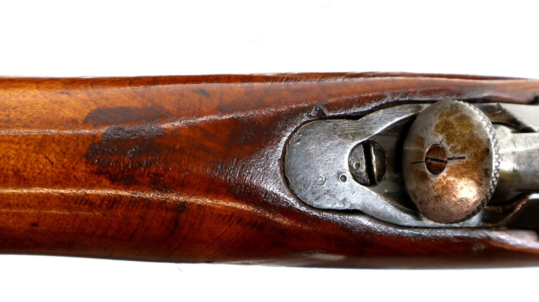 Wear: Metal finish turning brown with light pitted spots, rust speckles, scratches, handling marks and wear. Stocks show marks, scratches and wear.