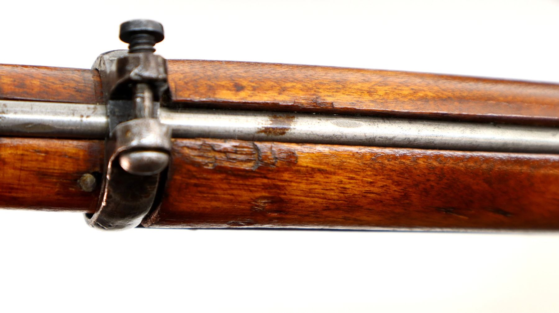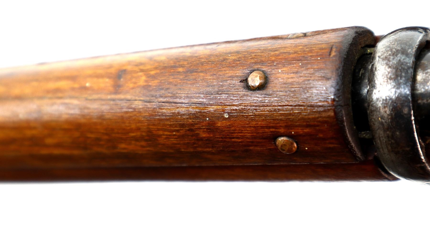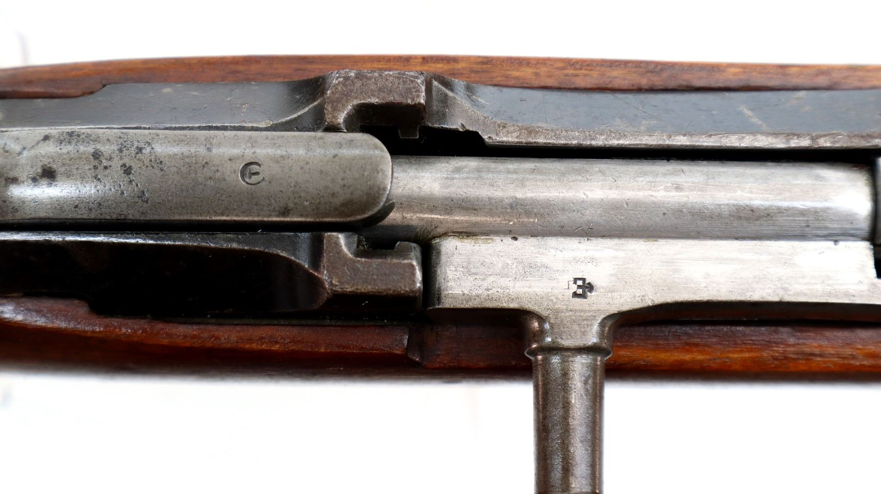 Wear: Metal finish turning brown with light pitted spots, rust speckles, scratches, handling marks and wear. Stocks show marks, scratches and wear.
