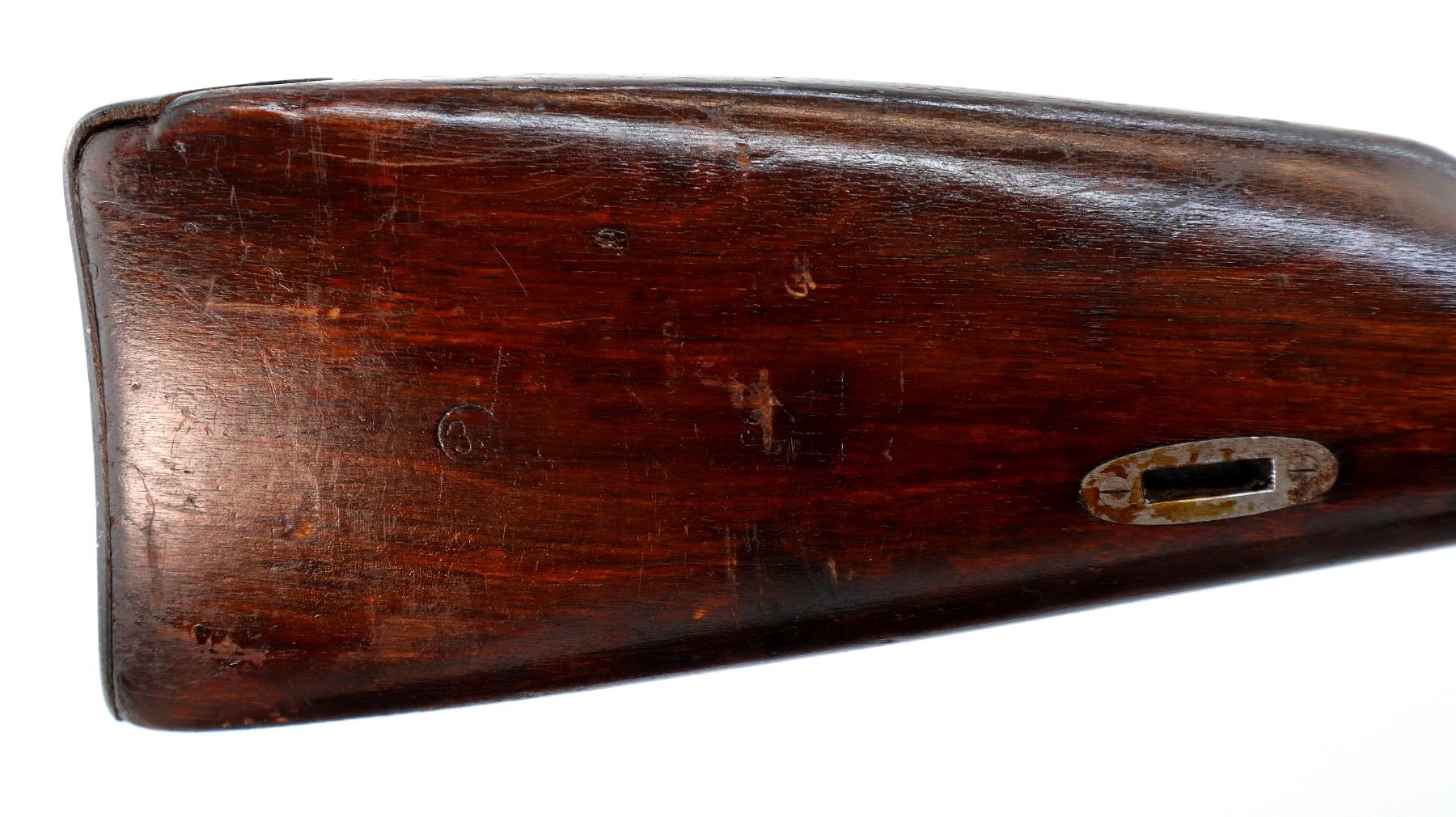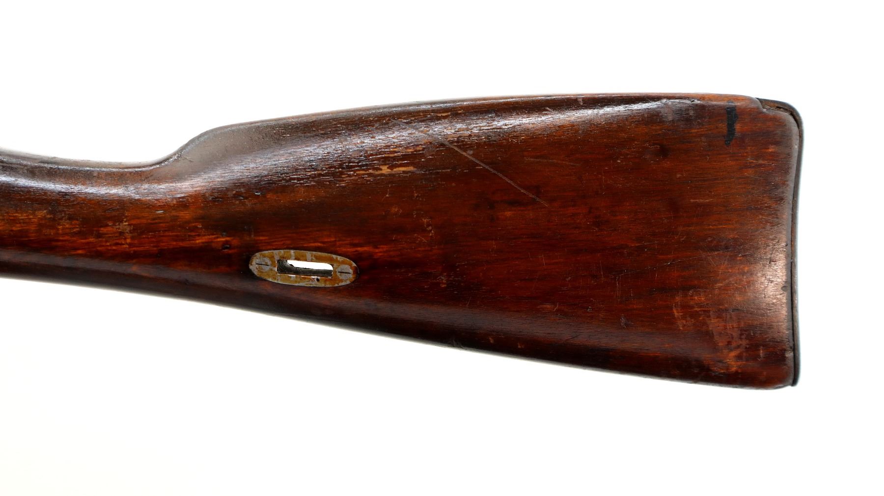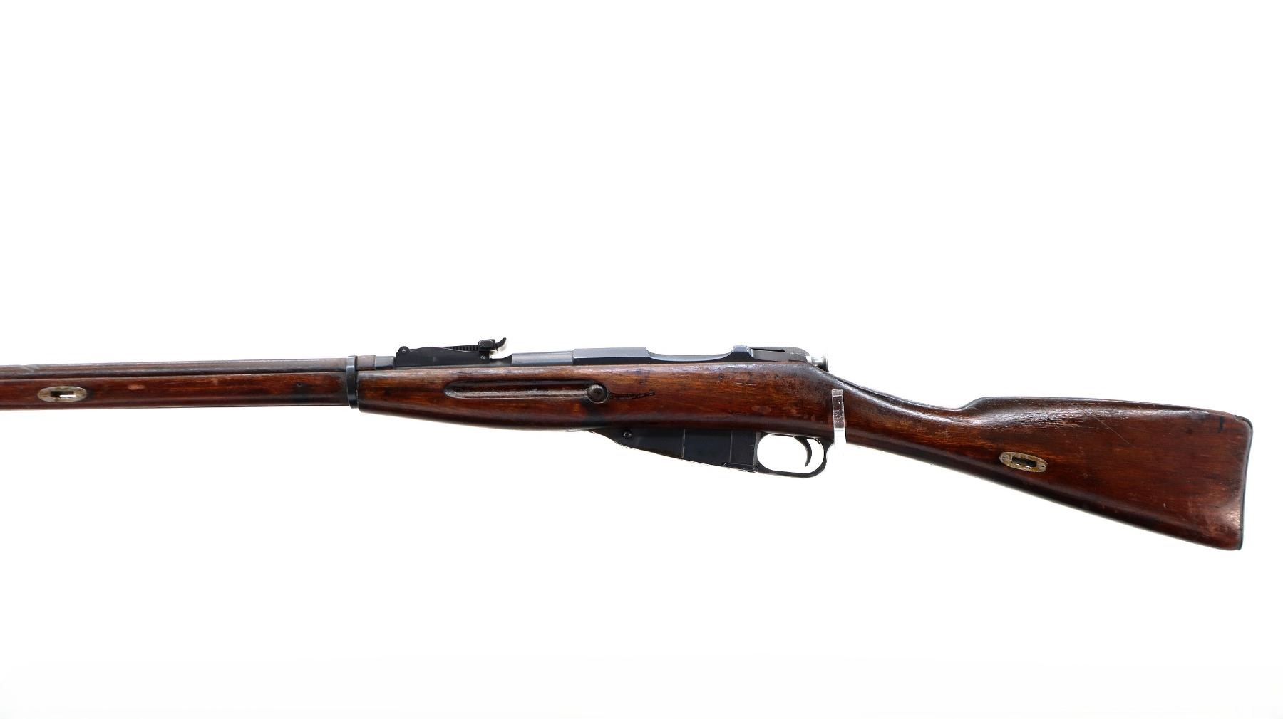 Main Description: Manufactured by Tula 1933, Arsenal rebuilt numbered to match. Post front sight with hood and ramp, adjustable u notched rear sight, blued finish, hex receiver, silver bolt with straight handle. Two piece full military wood stocks, handguard has a large chip, finger grooved forearm, straight grip, smooth steel butt plate, sling slots, cleaning rod.