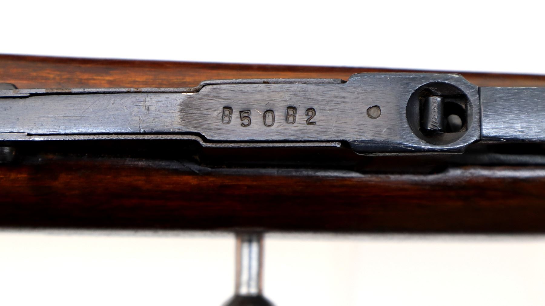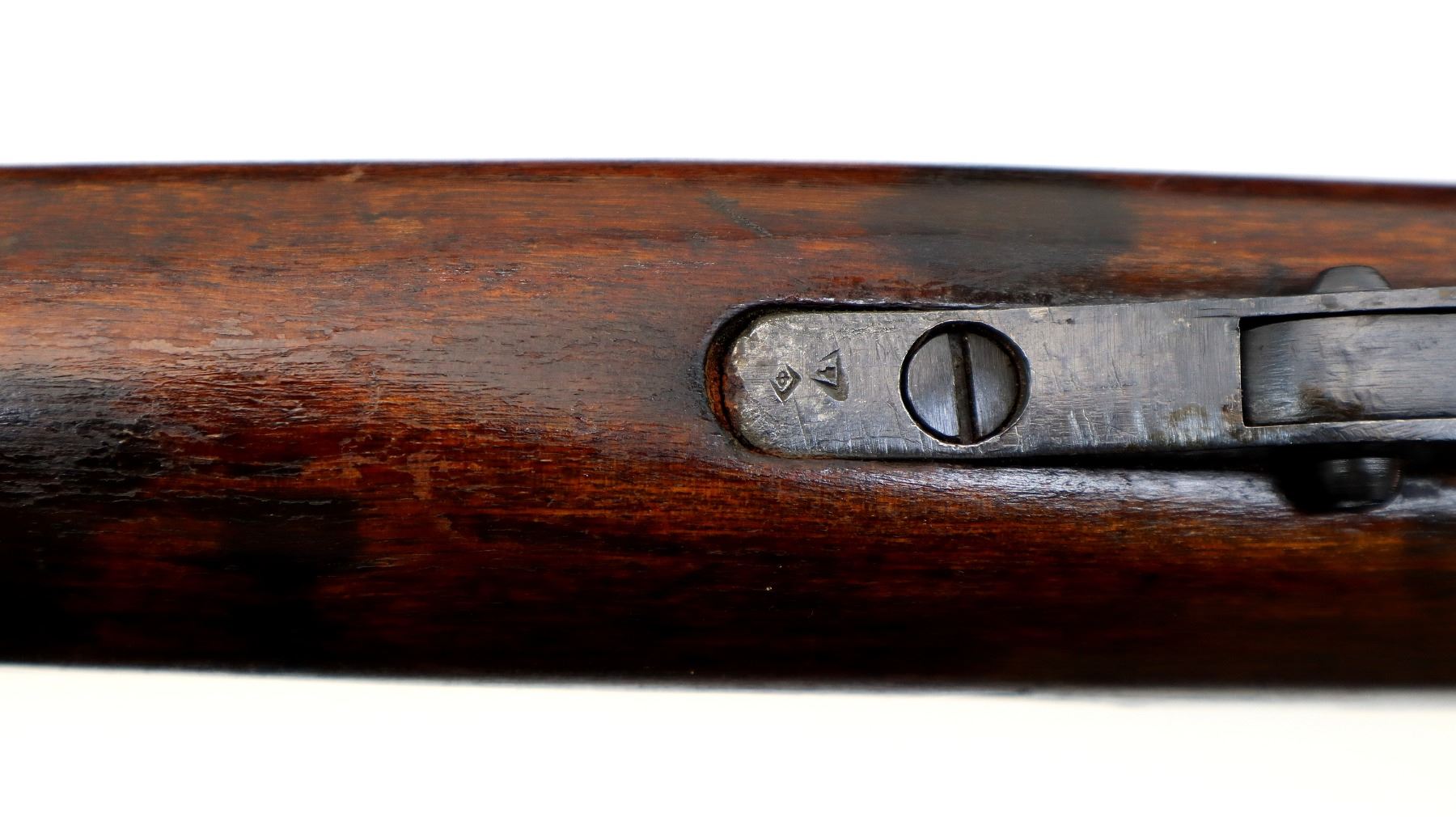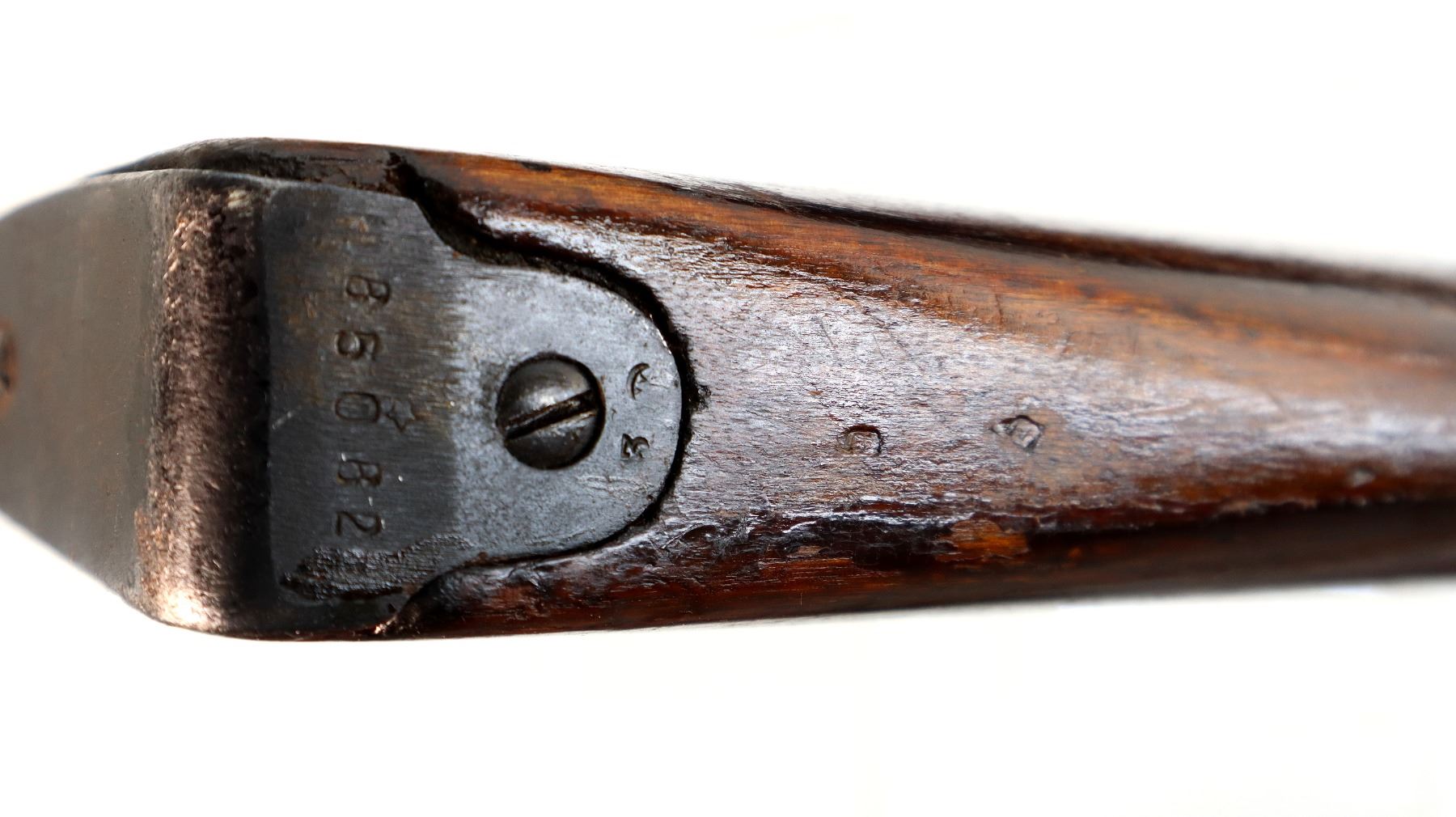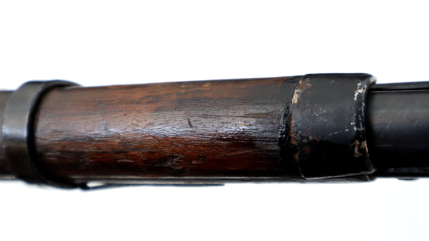 Main Description: Manufactured by Tula 1933, Arsenal rebuilt numbered to match. Post front sight with hood and ramp, adjustable u notched rear sight, blued finish, hex receiver, silver bolt with straight handle. Two piece full military wood stocks, handguard has a large chip, finger grooved forearm, straight grip, smooth steel butt plate, sling slots, cleaning rod.
