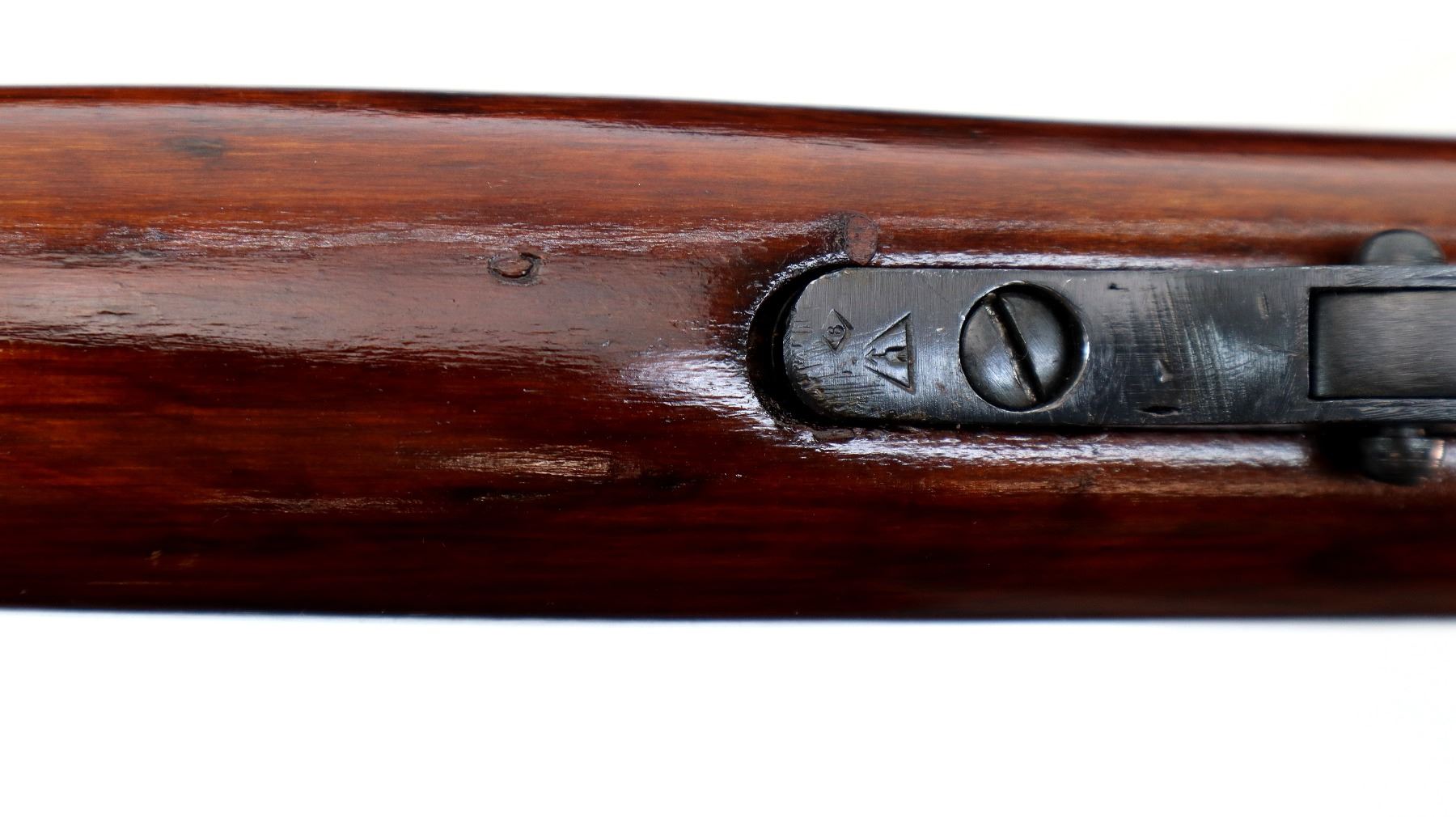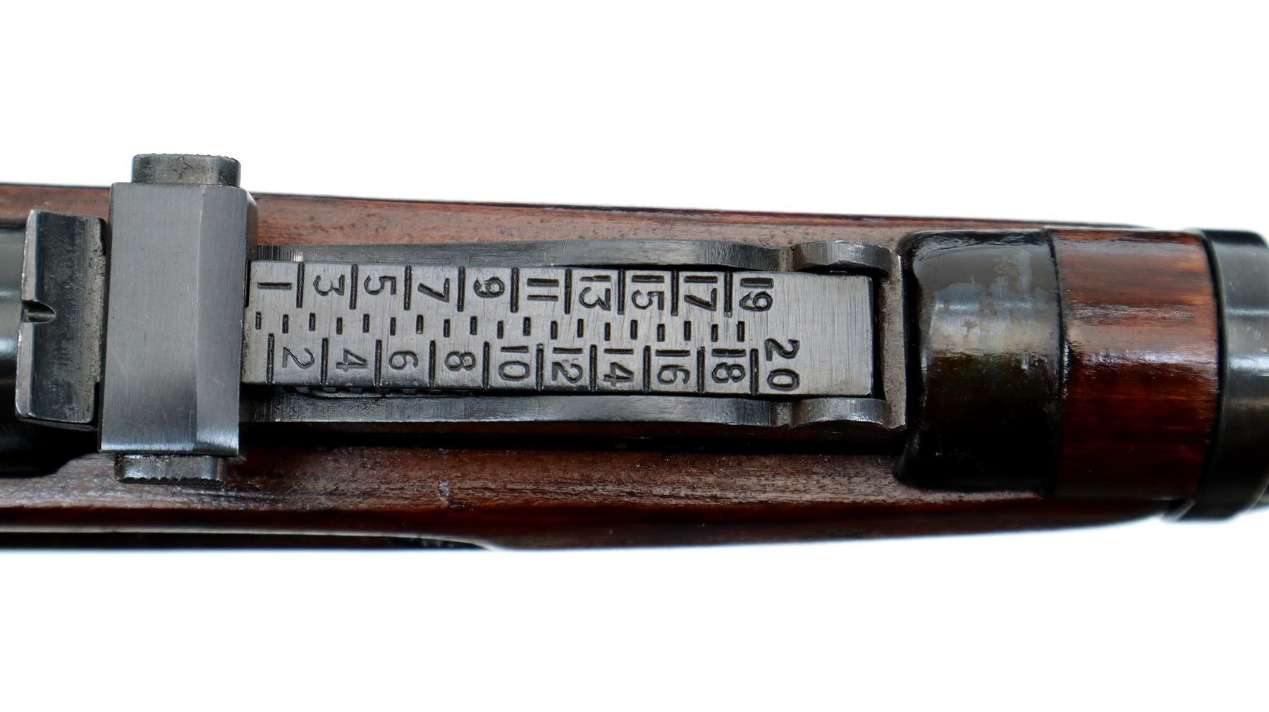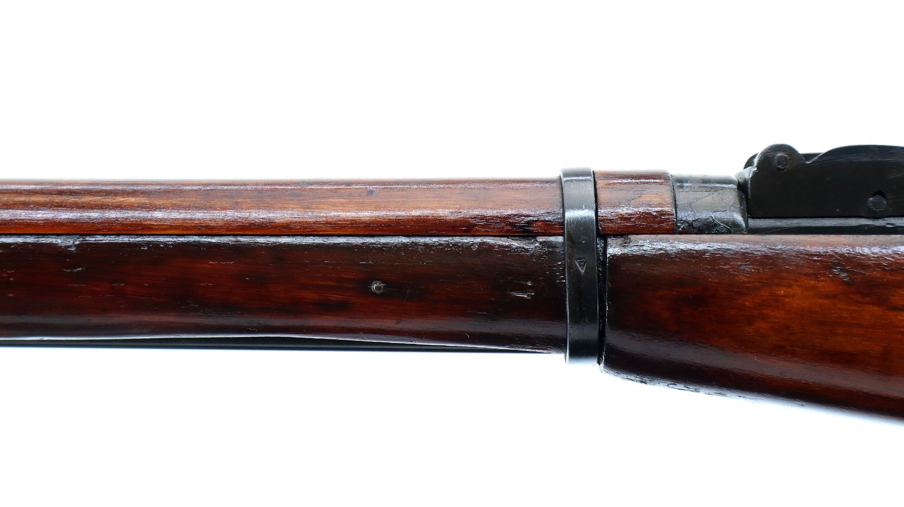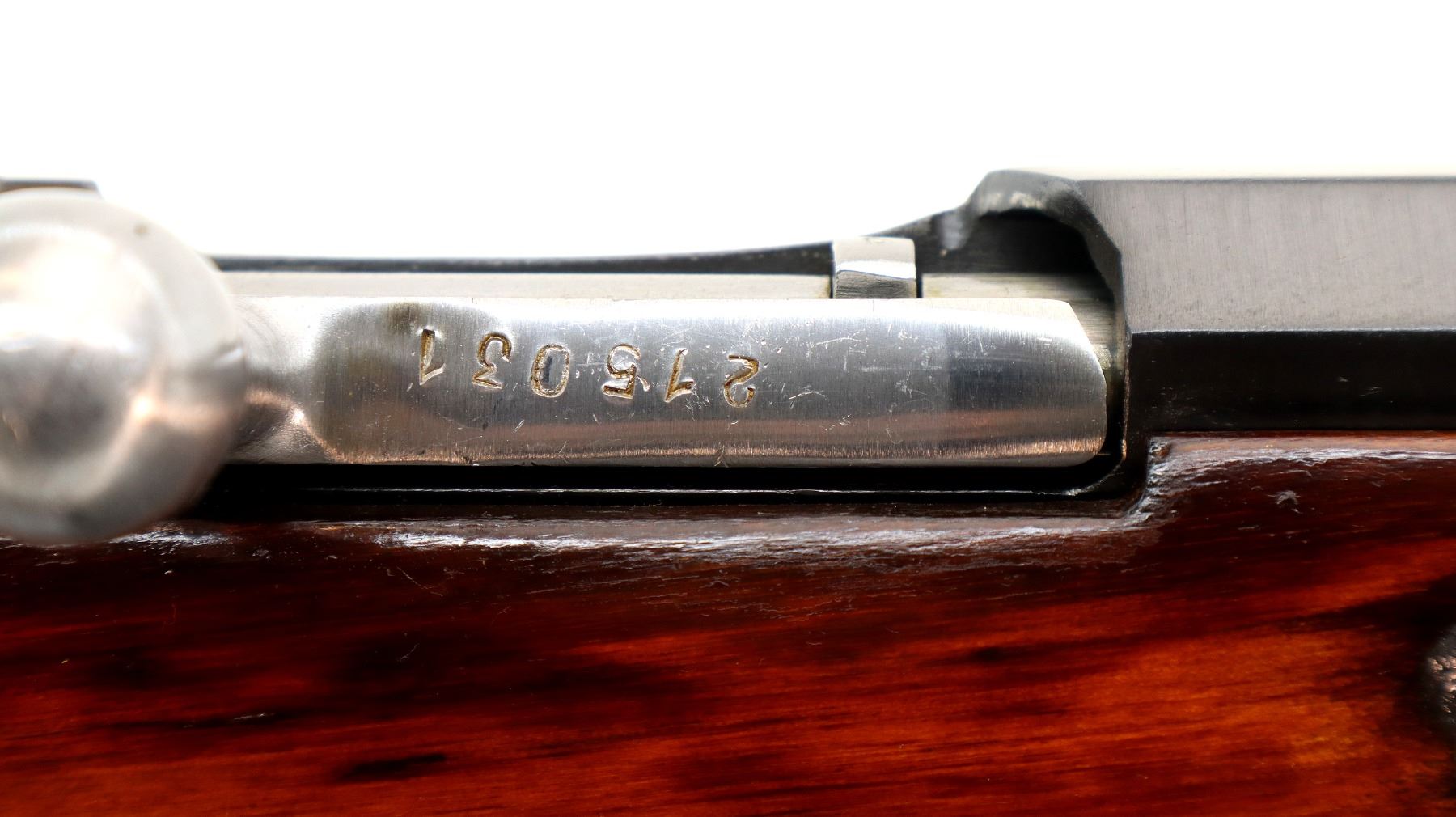 Main Description: Dated 1933, arsenal rebuilt numbered to match, has MO (Ministry of Defense) triple marked dated 43, 51 and 53. Post front sight with hood and ramp, adjustable u notched rear sight, blued finish, hex receiver, silver bolt with straight handle. Two piece full military wood stocks, finger grooved forearm, straight grip, smooth steel butt plate, sling slots, cleaning rod.