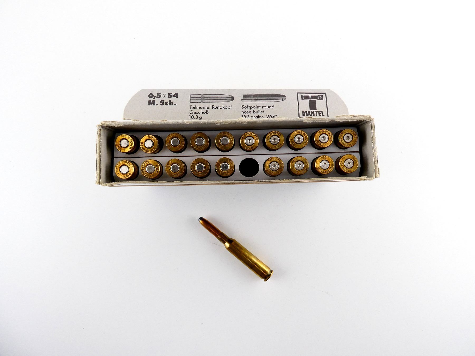 RWS 6.5X54 MANNLICHER SCHOENAUER AMMO AND NON-PRIMED BRASS CASES LOT
