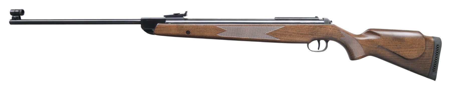 Cal. 5.5mm (22). S# 1335135. Bbl. 19 1/2". Hooded blade front sight. Adjustable rear sight. Scope mount present. German made break-action air rifle. Blued finish. Checkered beech stock with left side cheek piece & recoil pad. CONDITION: stock & metal show light handling & usage wear. Action functions properly when hand cycled. Bright near excellent bore. (02-24490/MJC). $200-300.