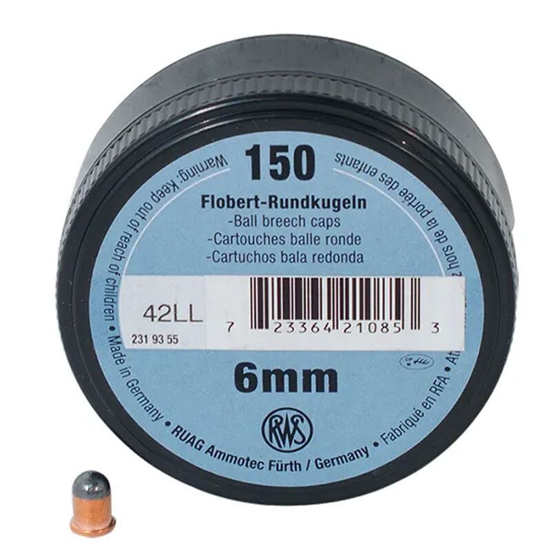 RWS Flobert-Rundkugein 6mm Ball Breech Caps (150 Count) Sku 2319355This Lot is for One Brand new, sealed Unit. UPC : 4000294193552
