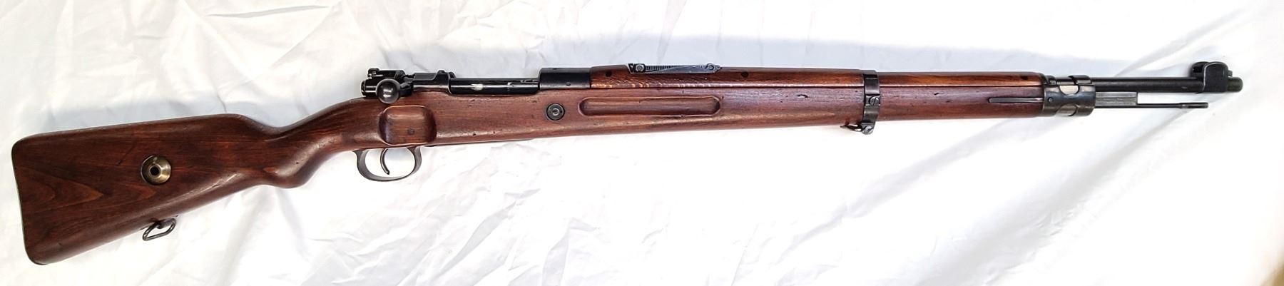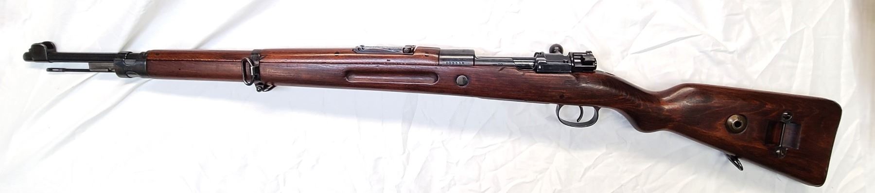 short rifle based on the German Kar98AZ. Identifying attributes include a 98/05 style