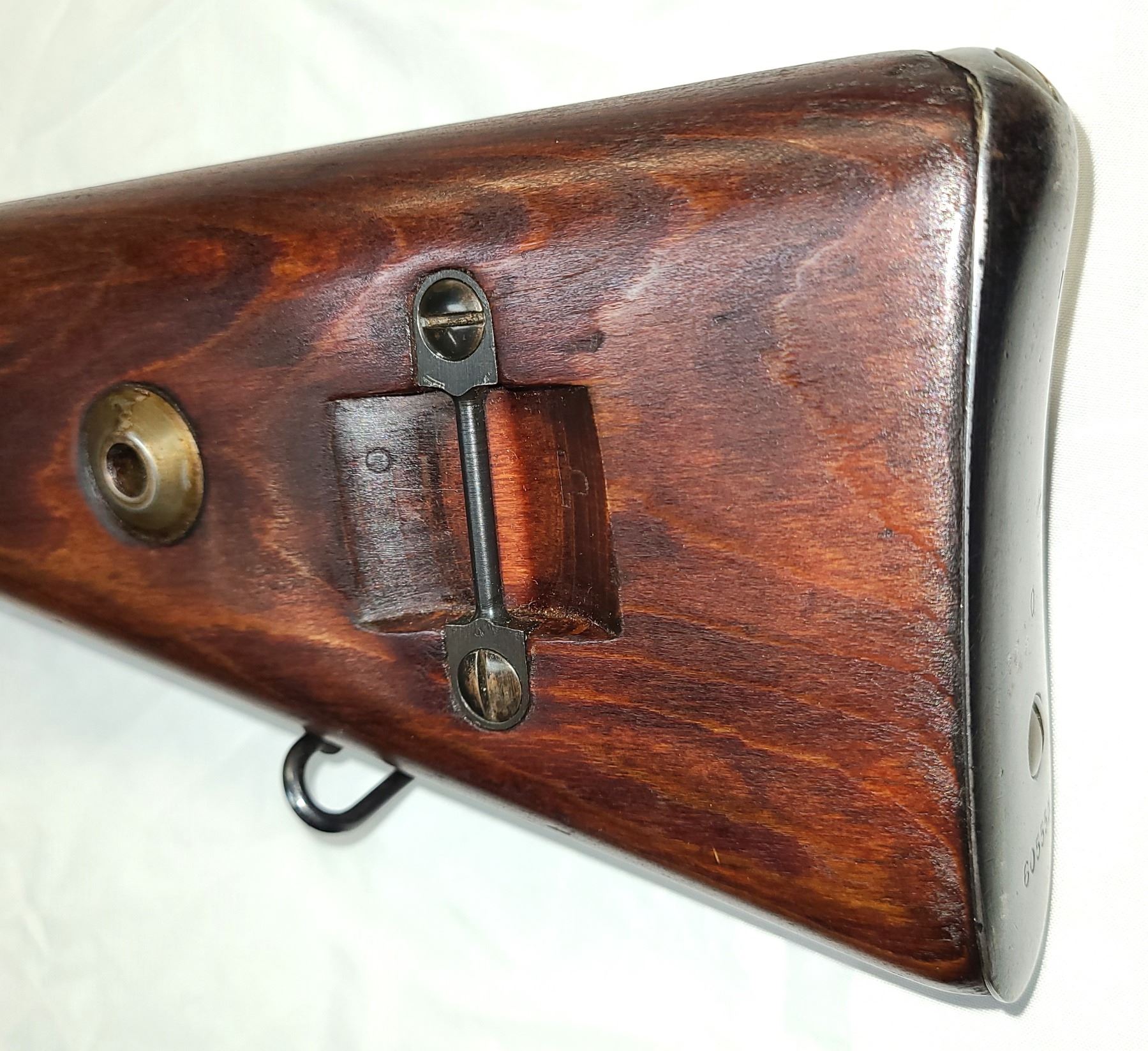 stacking hook near the end of the stock on the right side.
