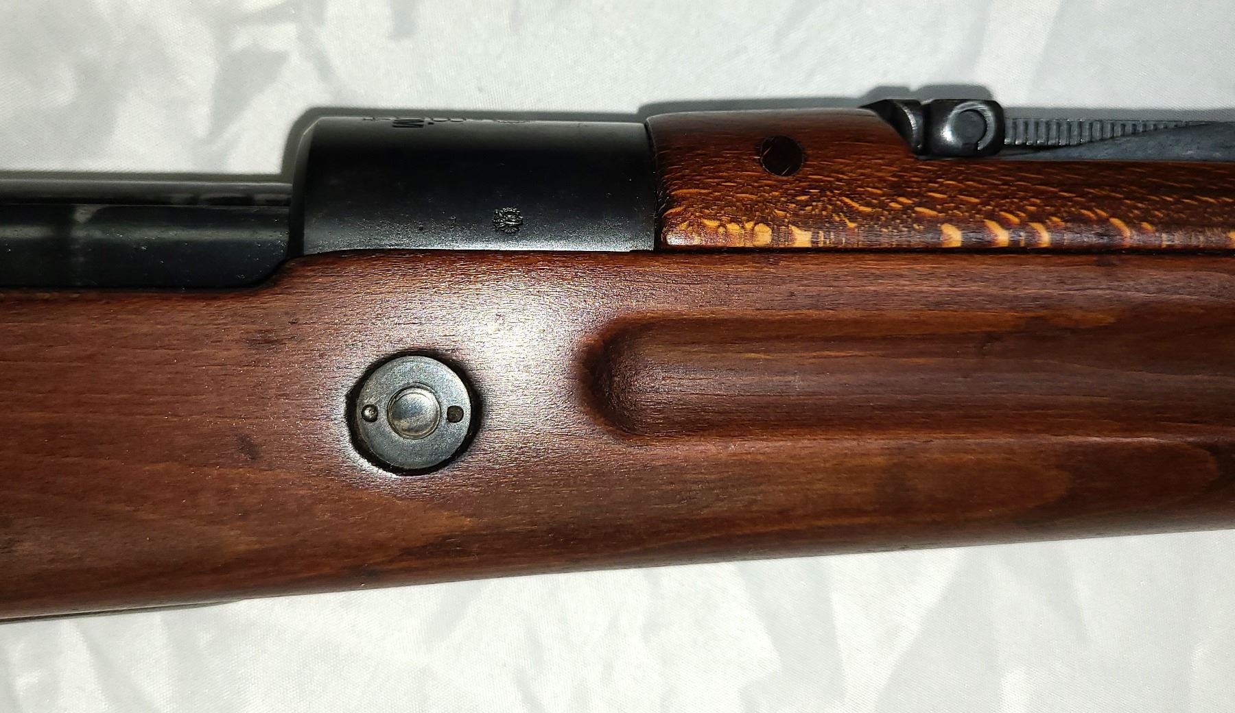 The stock and hand guard show minimal bruises and dings and even the stock