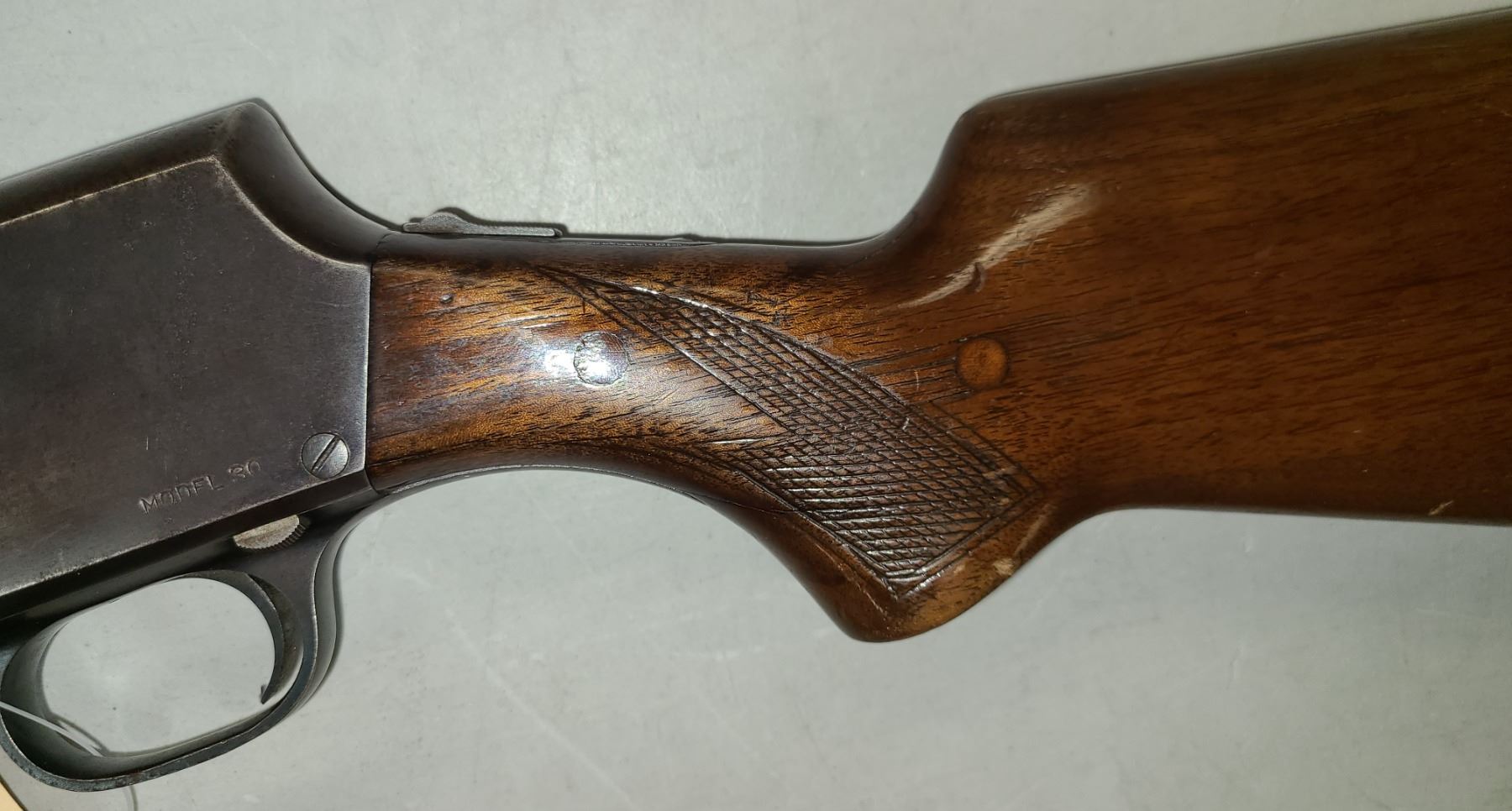 Shotgun by Savage Arms has a cracked Receiver and Rear stock shows some cracks ytoo.