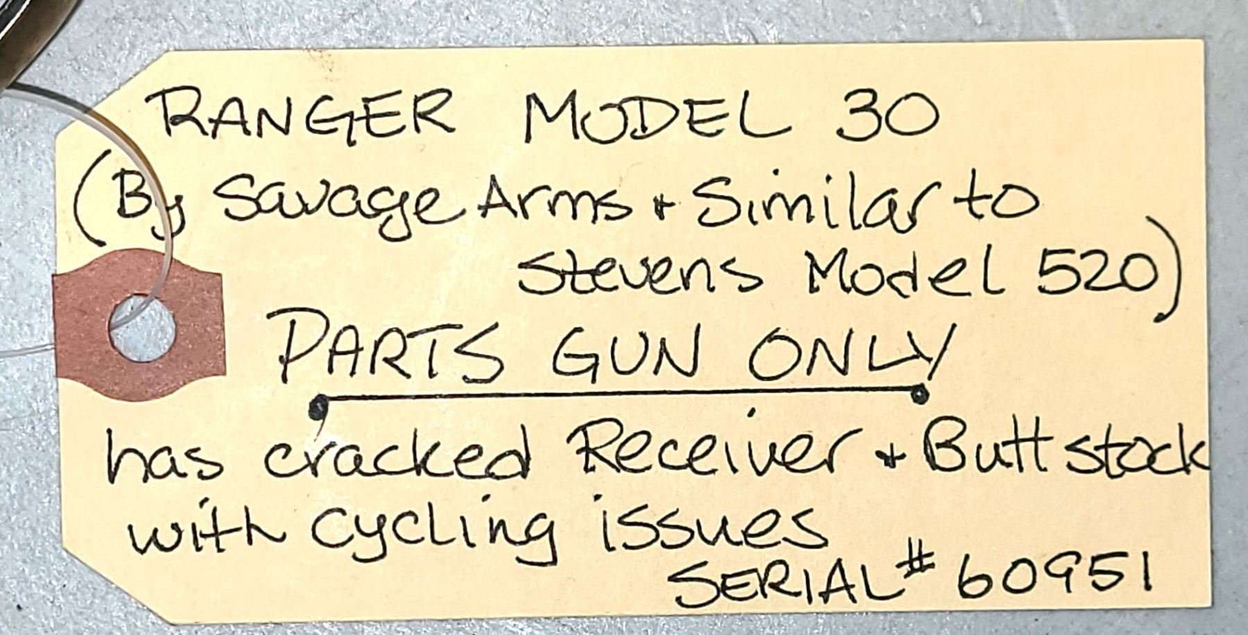 Ranger Model 30 by Savage Arms PARTS GUN - 12 ga Shotgun