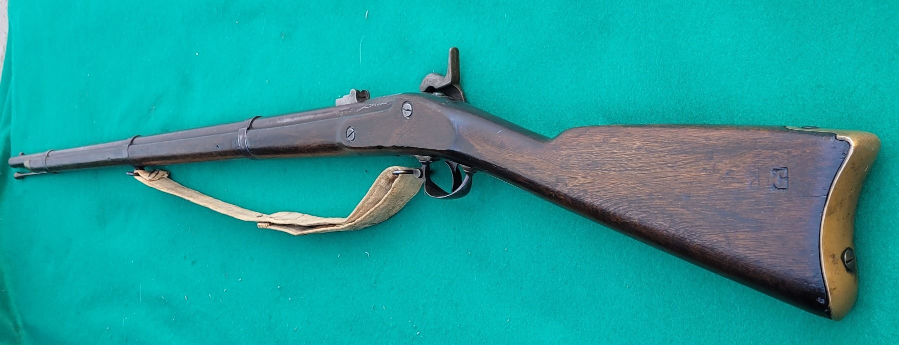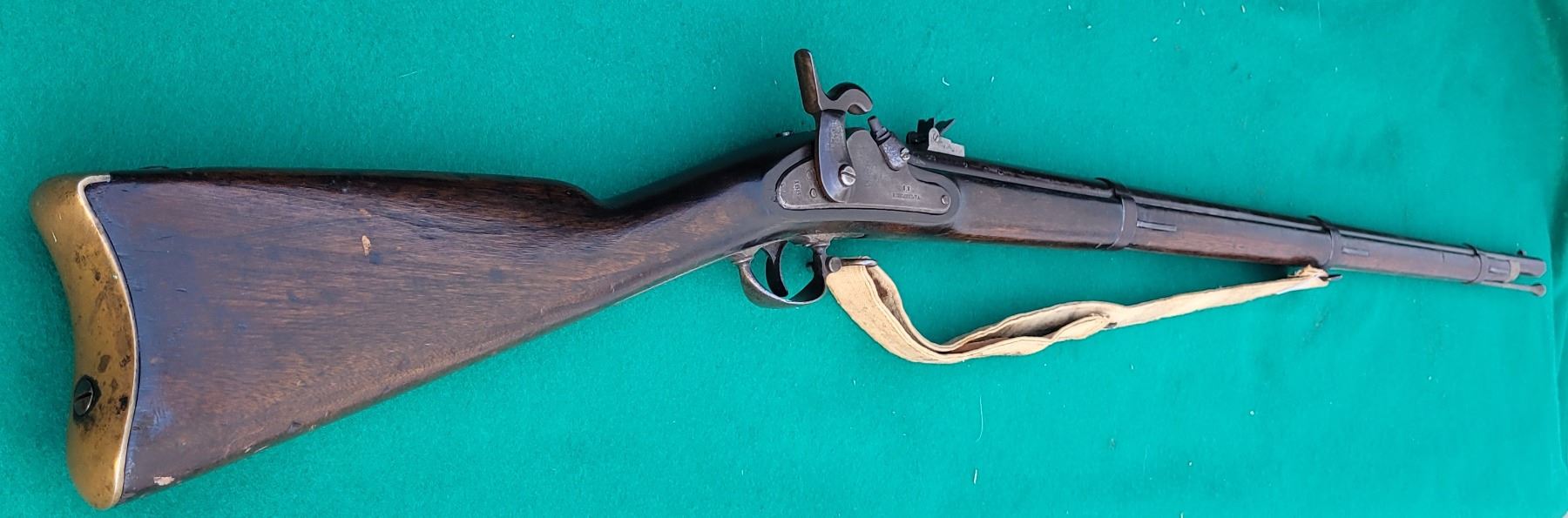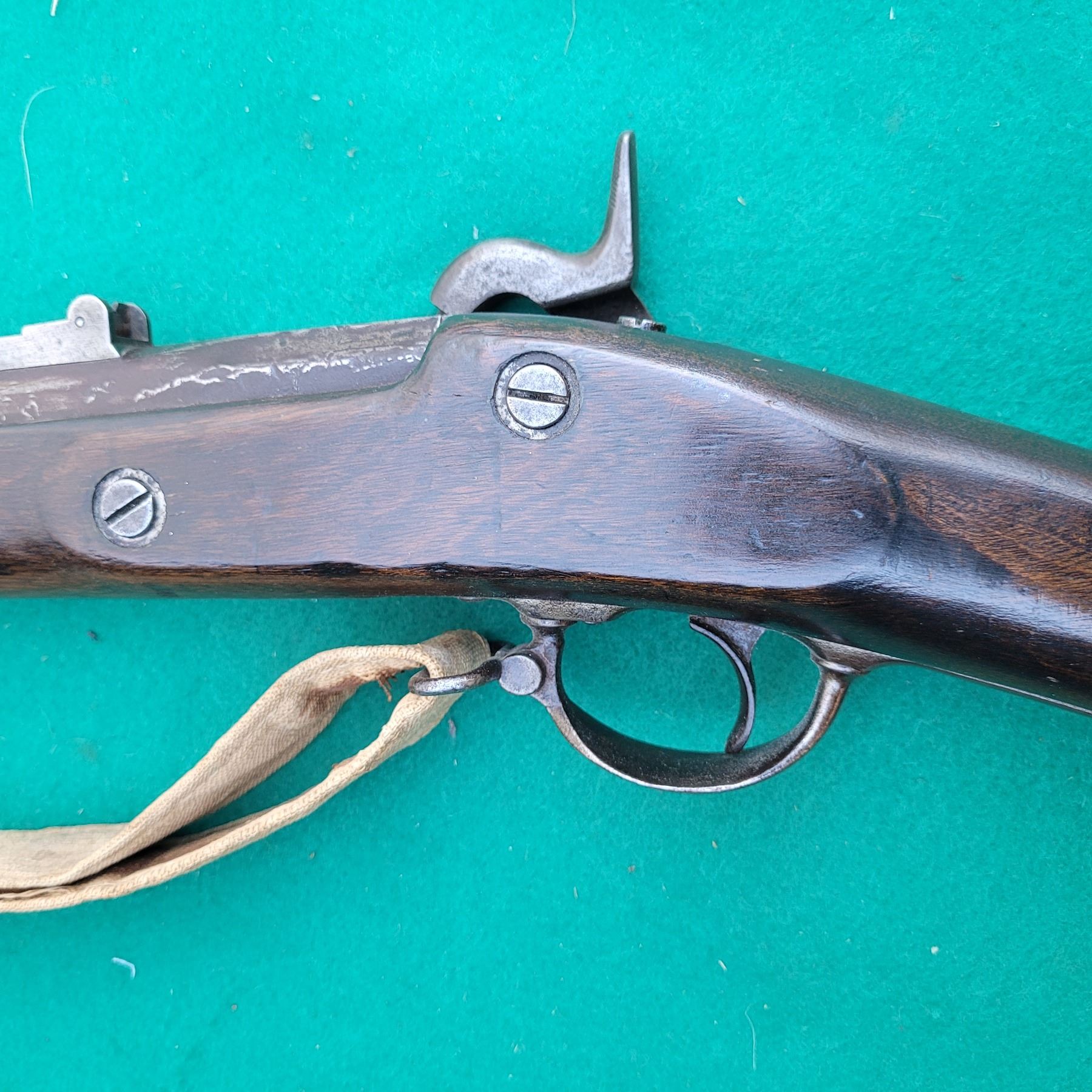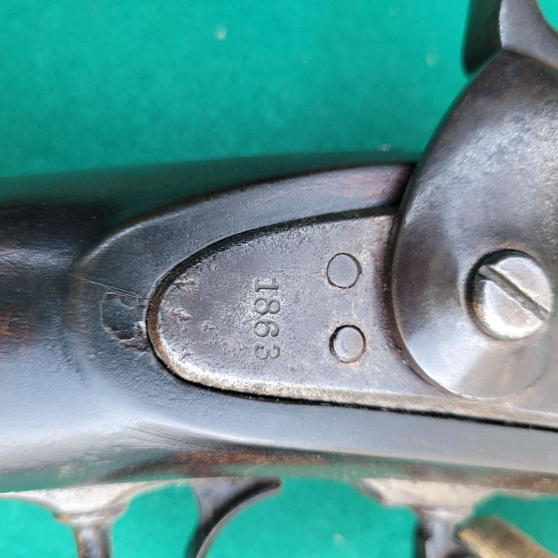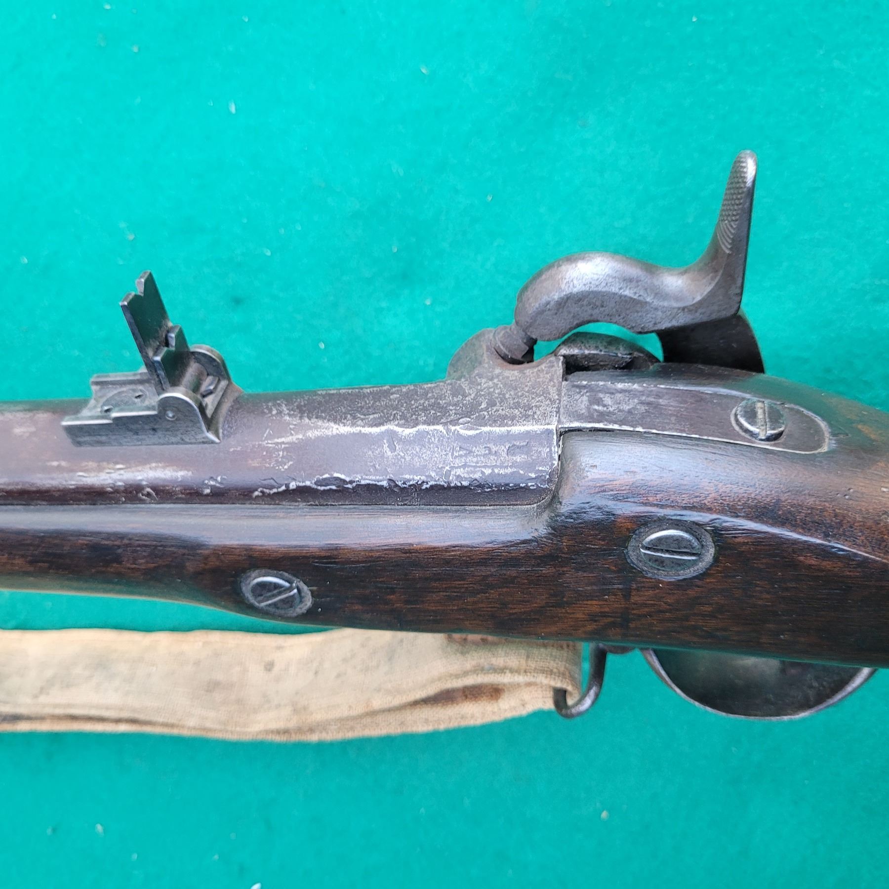 Made at the Richmond Armory, Virginia. Marked on the lock "C.S. over Richmond, VA" dated 1863. Also marked "C.S." on the top tang of the brass buttplate. Bonus: comes complete with original linen shoulder strap.