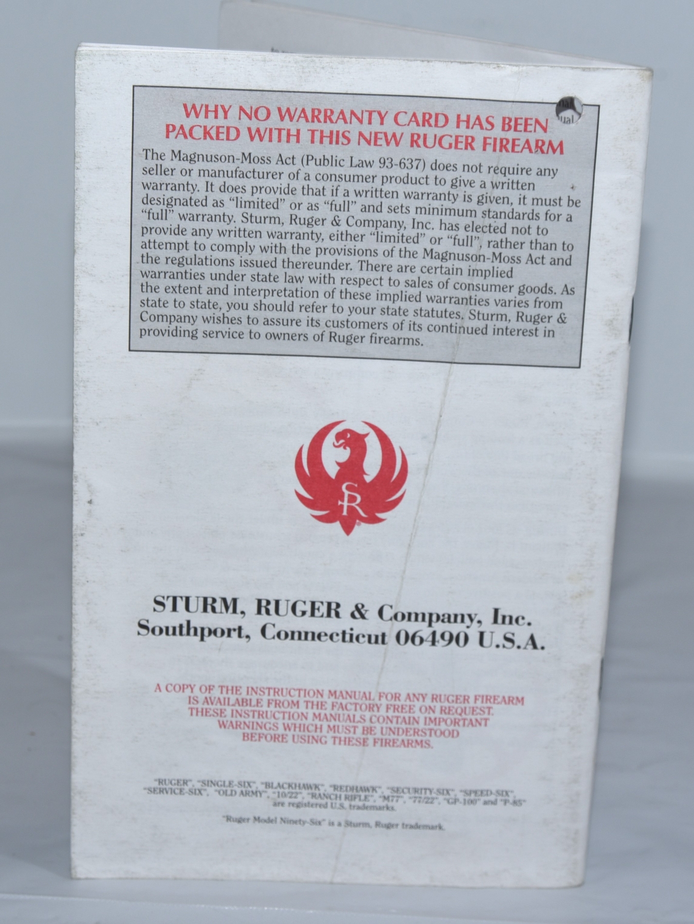 Rare Original Ruger Model Ninety Six Instruction Manual