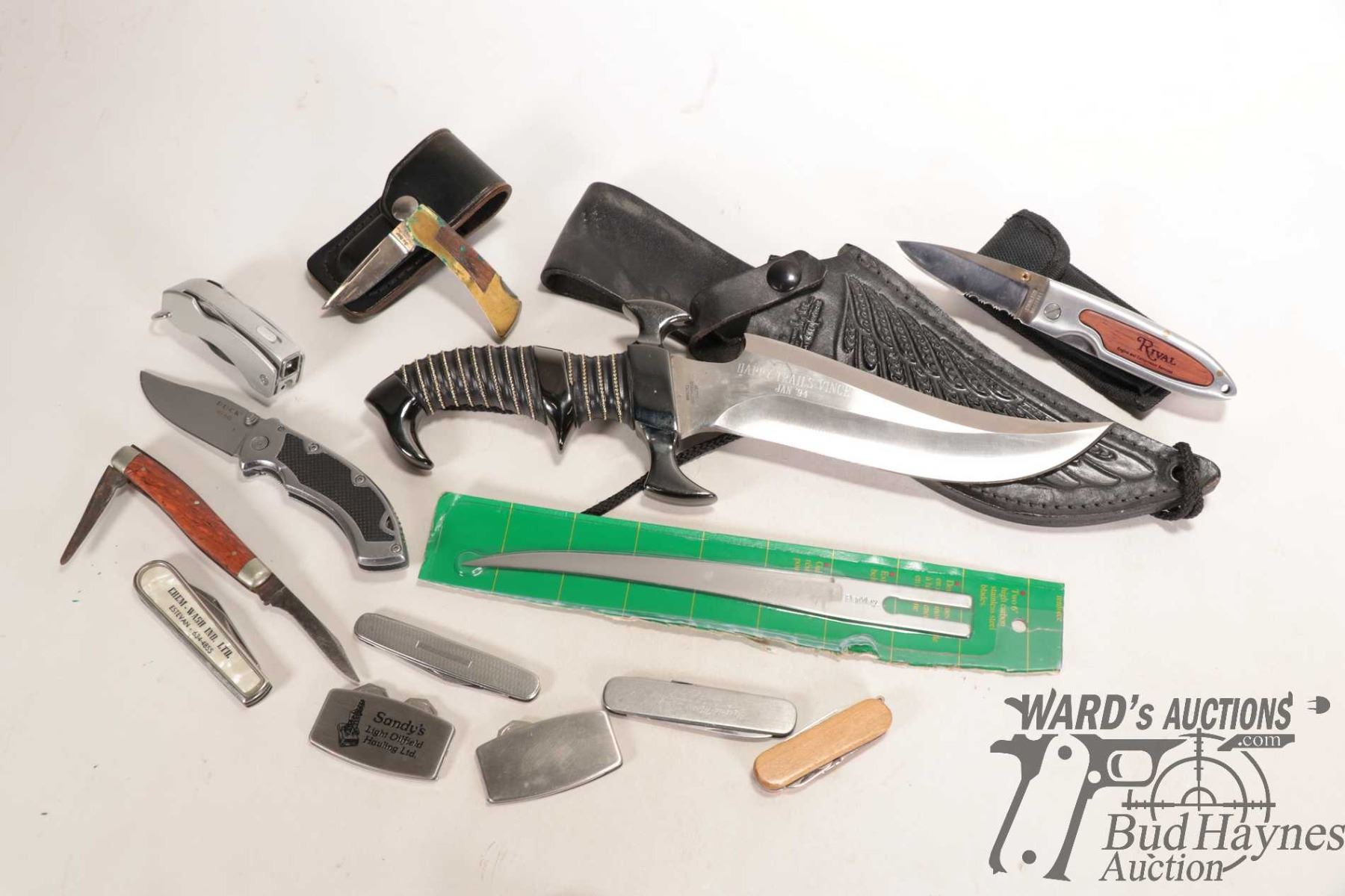 Raven Bowie Knife by Hibben Knives with 7-1/2" blade with sheath plus 10 folding knives