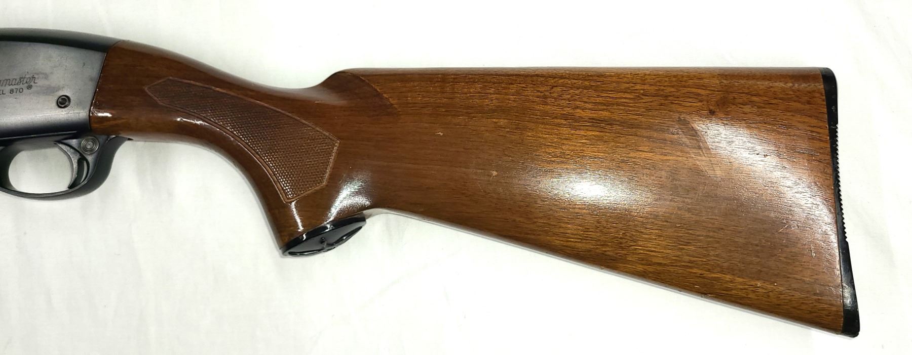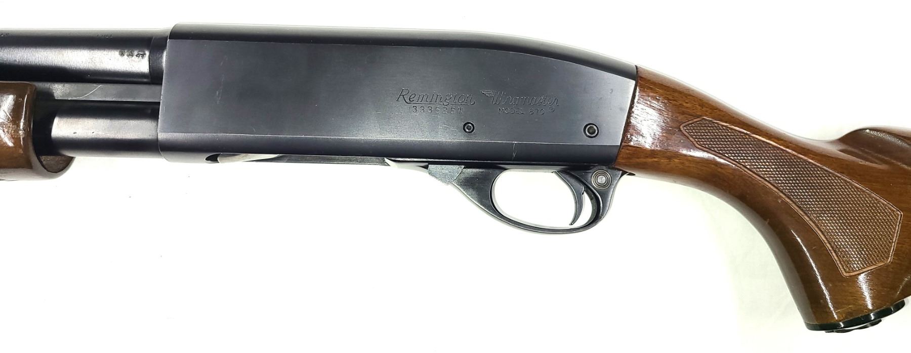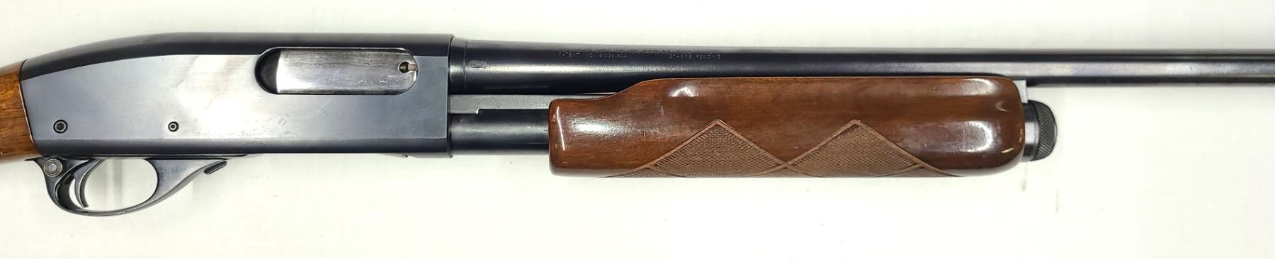 The gun is chambered for 2 3/4 inch shells and the barrel is choked Full. The factory Remington