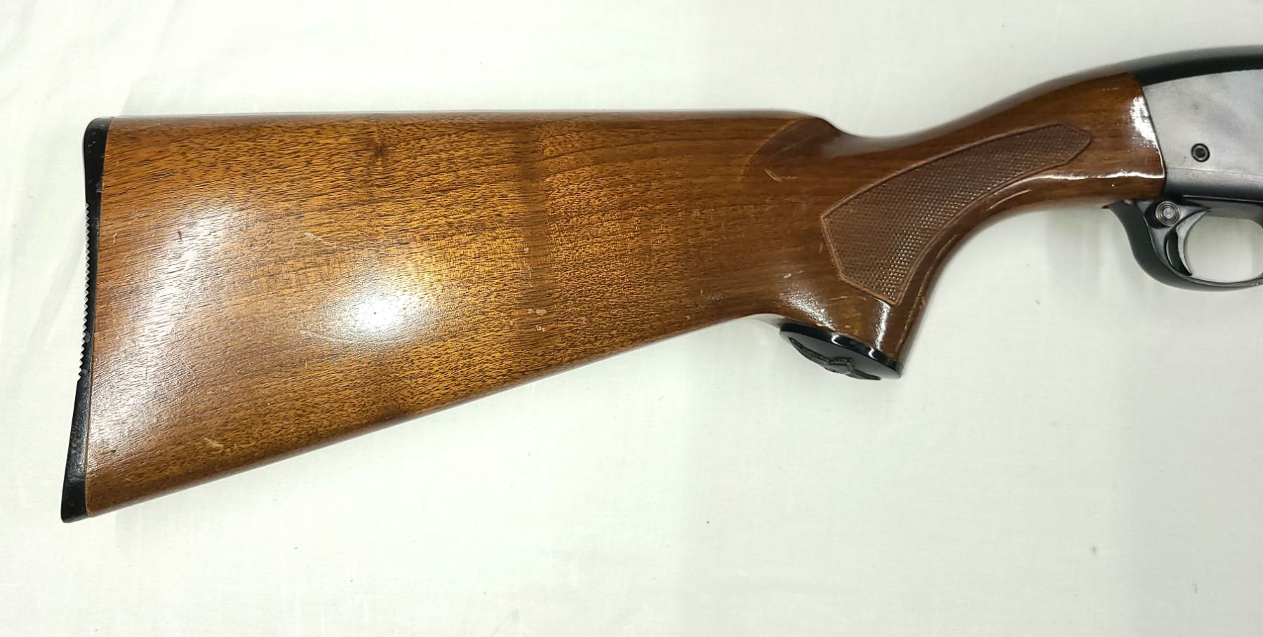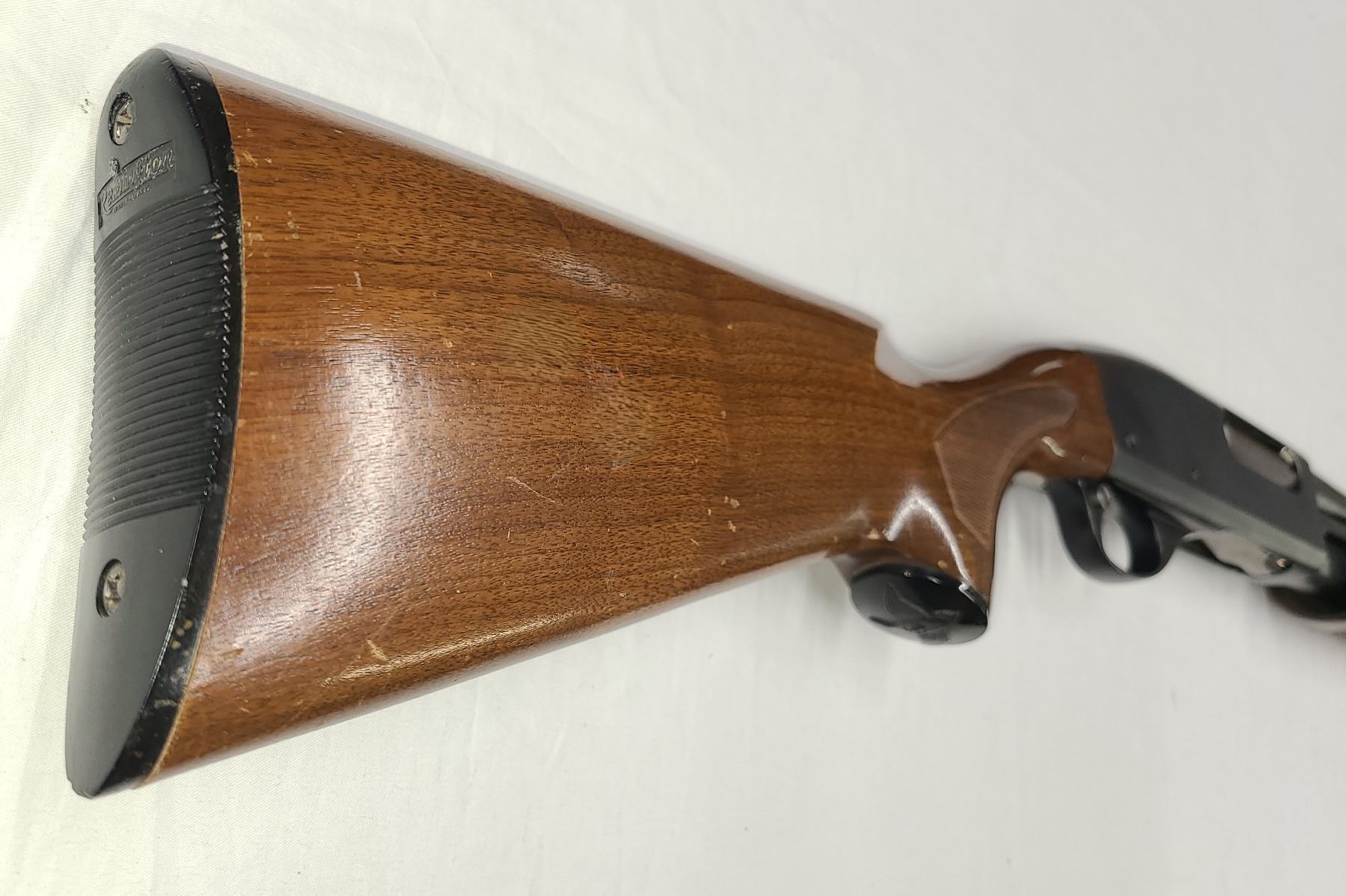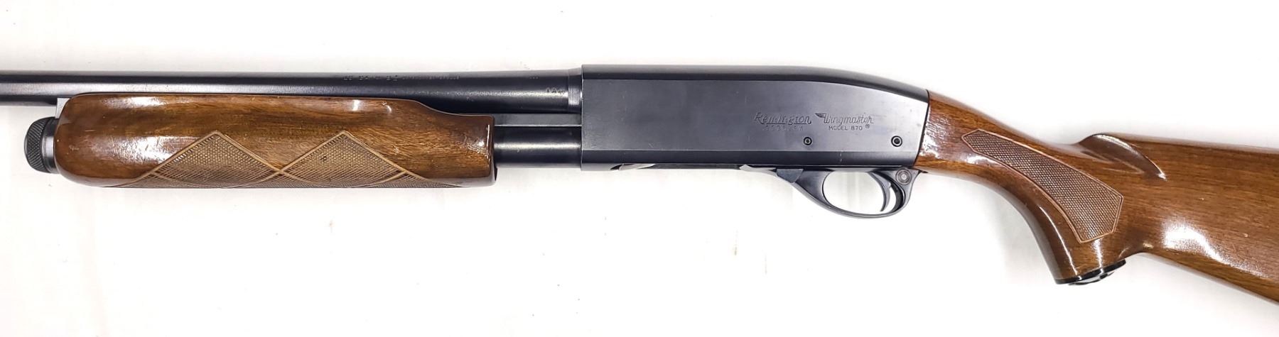 The gun is chambered for 2 3/4 inch shells and the barrel is choked Full. The factory Remington