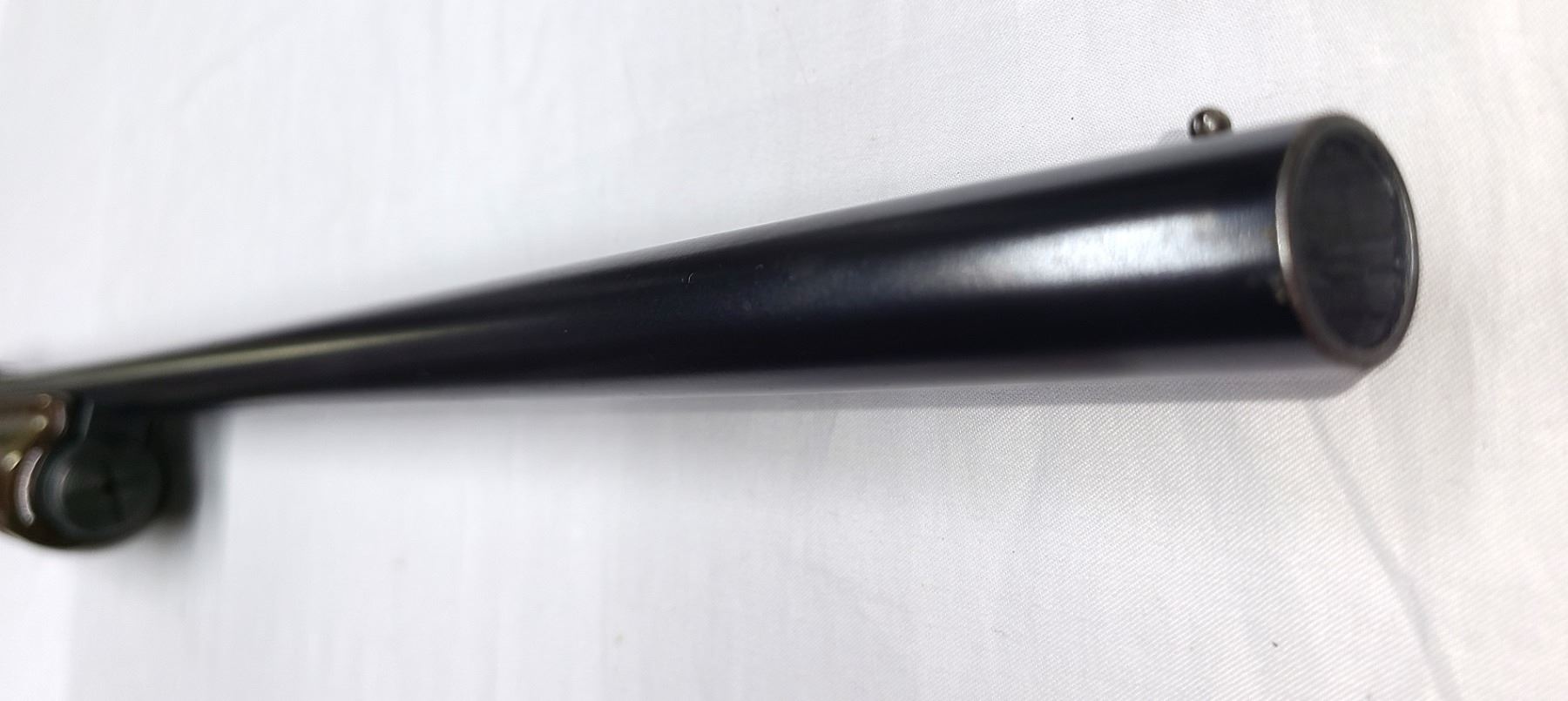 marked black plastic butt plate and heel cap is present. The stock and forearm show light handling